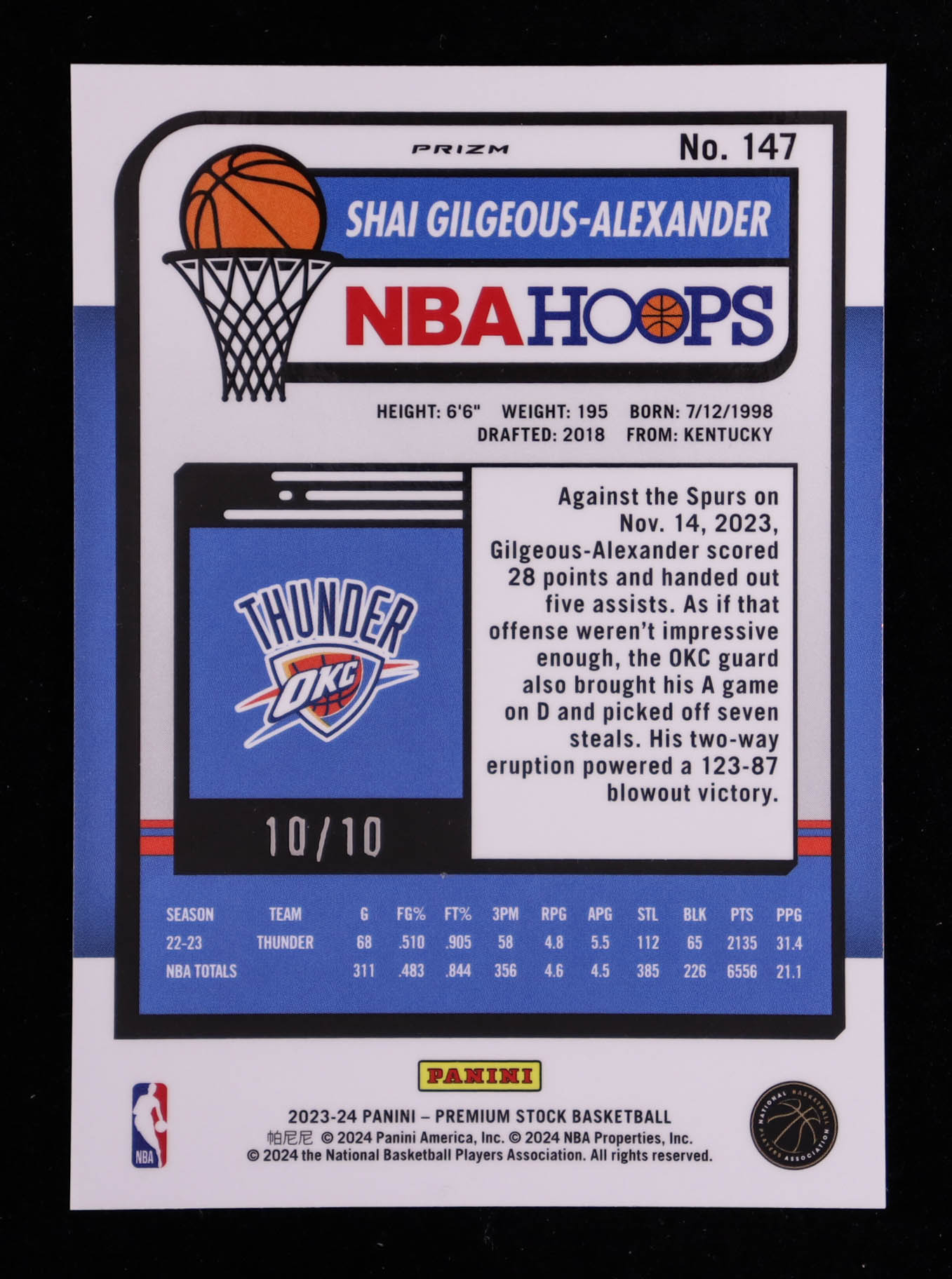 Shai Gilgeous-Alexander 2023-24 Hoops Premium Stock Gold Disco Prizm #147 #10/10