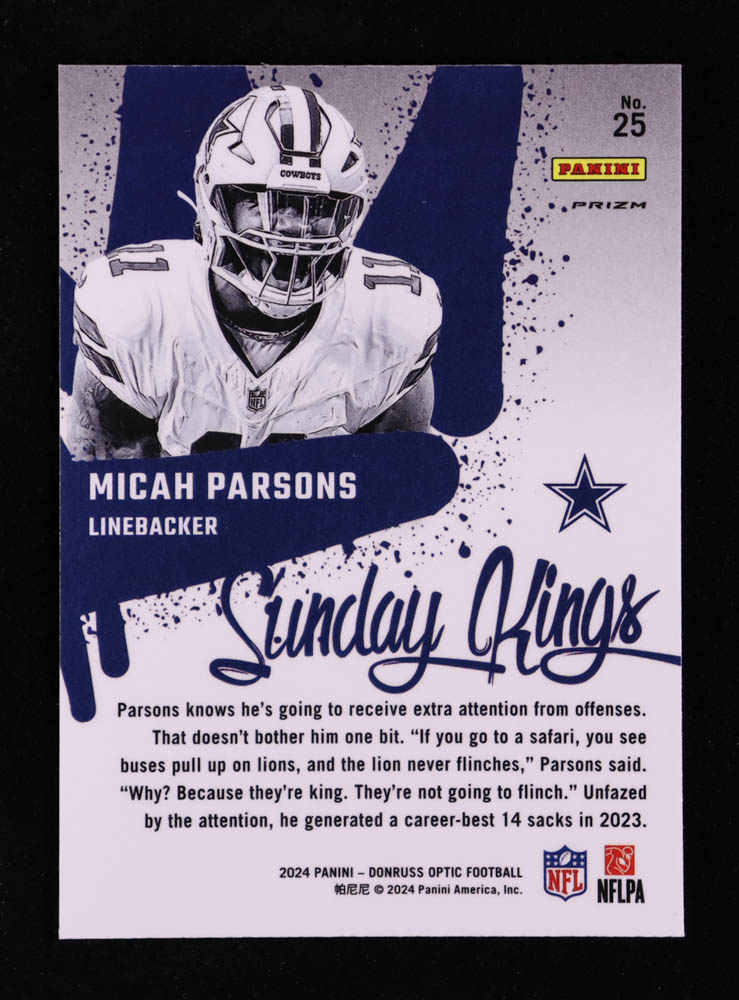 Micah Parsons 2024 Donruss Optic Sunday Kings #25