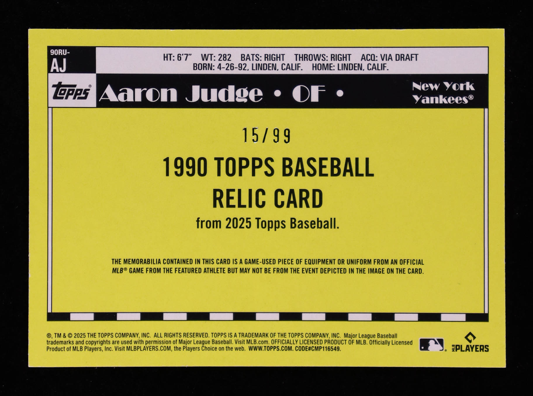 Aaron Judge 2025 Topps Update '90 Topps Relics Green #90RUAJ #15/99