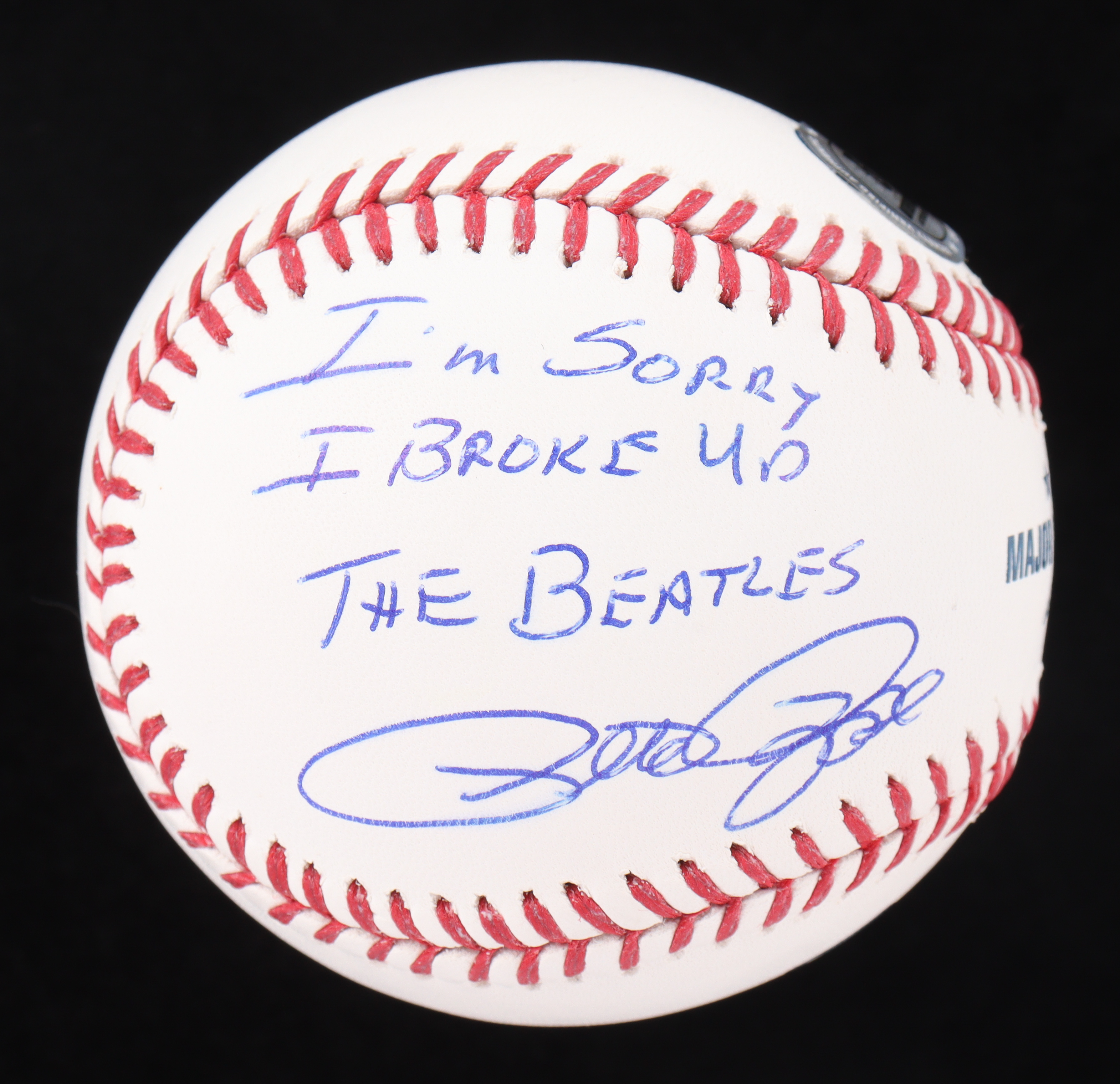 Pete Rose Signed OML Baseball Inscribed "I'm Sorry I Broke Up the Beatles" (Beckett)