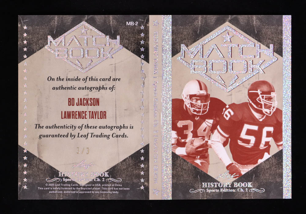 Bo Jackson / Lawrence Taylor 2025 Leaf History Book Sports Edition Chapter 2 Match Book Silver Pattern #MB2 #3/3