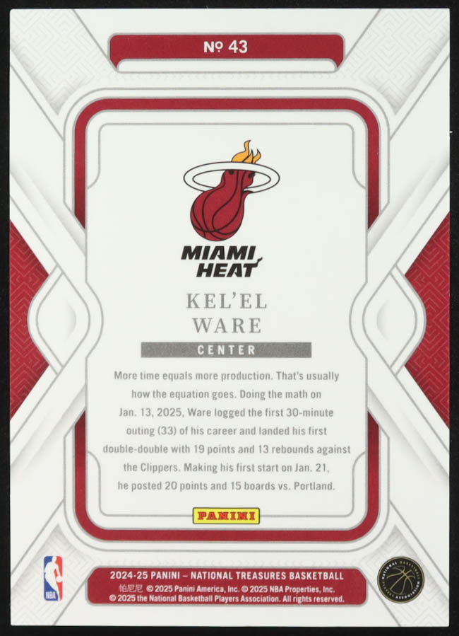Kel'el Ware 2024-25 Panini National Treasures #43 #34/75 RC