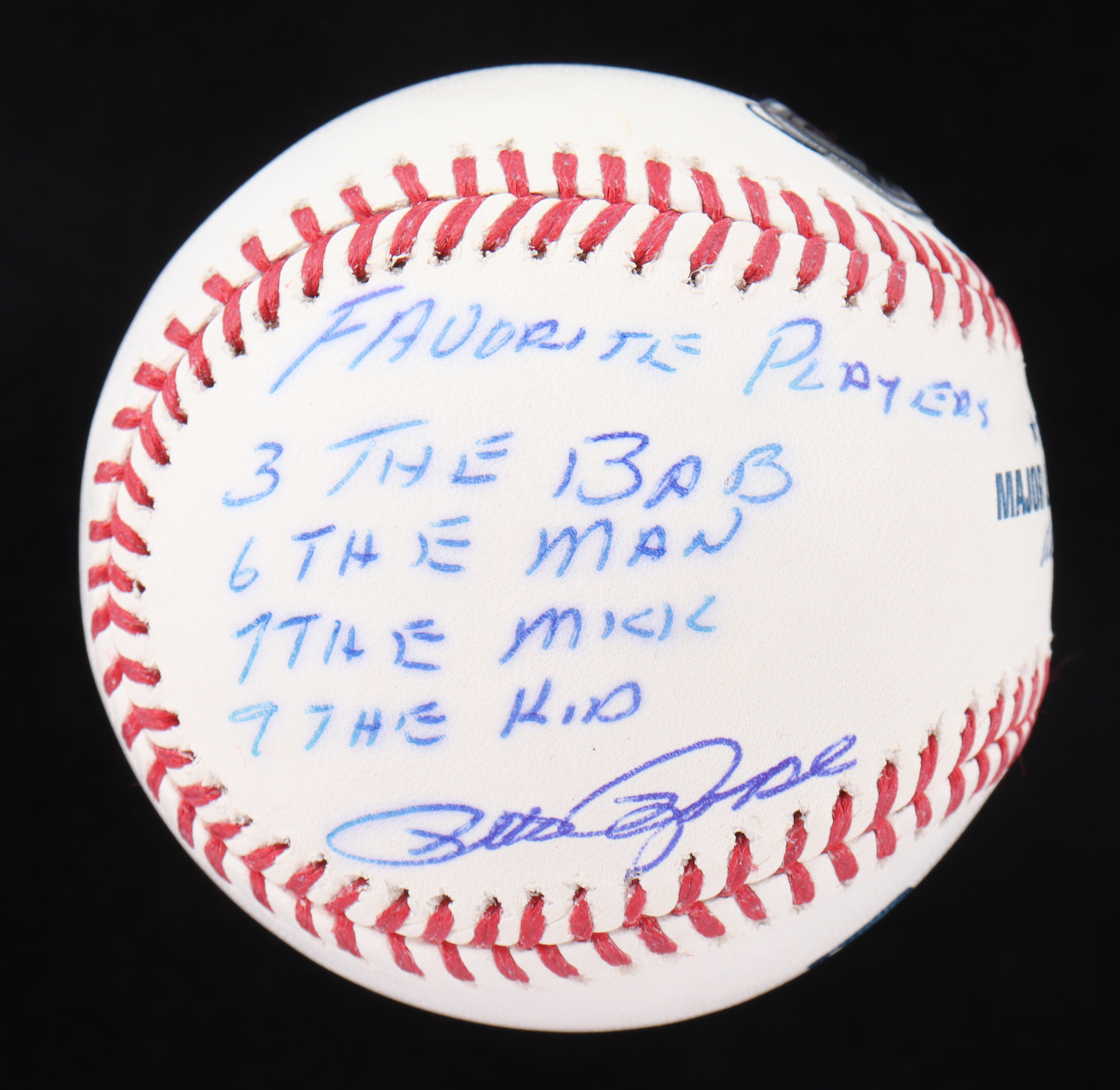 Pete Rose Signed OML Baseball Inscribed "Favorite Players 3 The Bab, 6 The Man, 7 The Mick, 9 The Kid" (Beckett)
