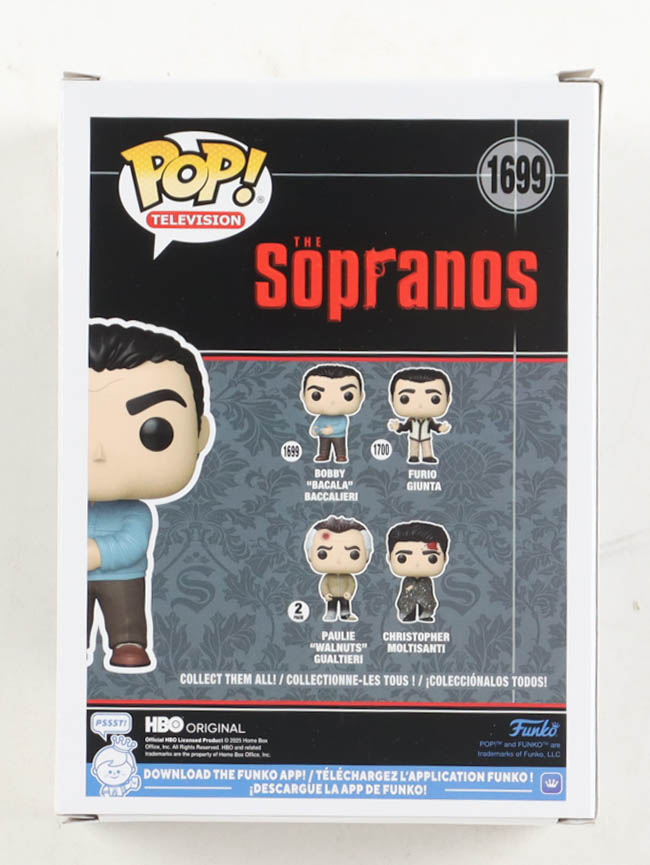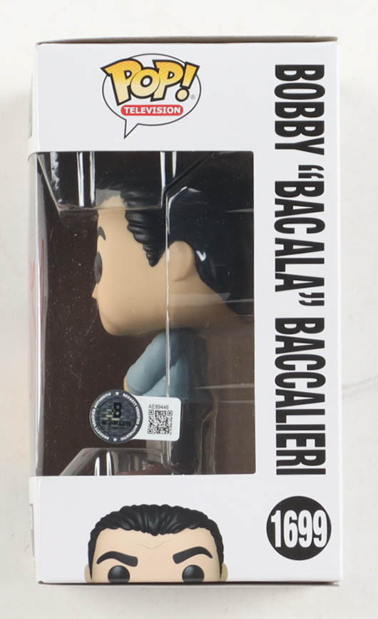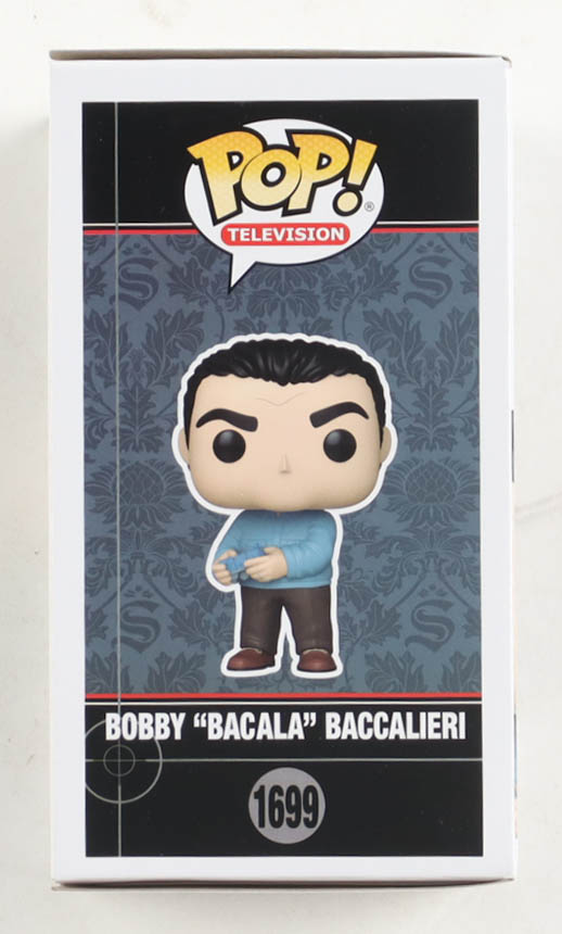 Funko pop! vinyl figure measures approximately 4" tall. Hand-signed on the packaging by Steve Schirripa (Bobby Bacalieri).