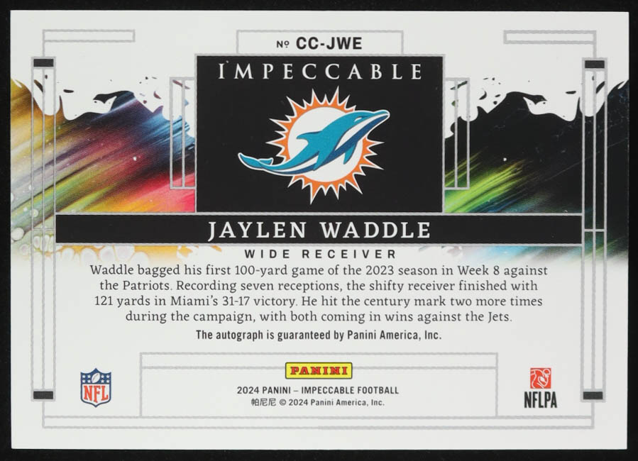Jaylen Waddle 2024 Panini Impeccable Canvas Creations Signatures Silver #7 #21/49