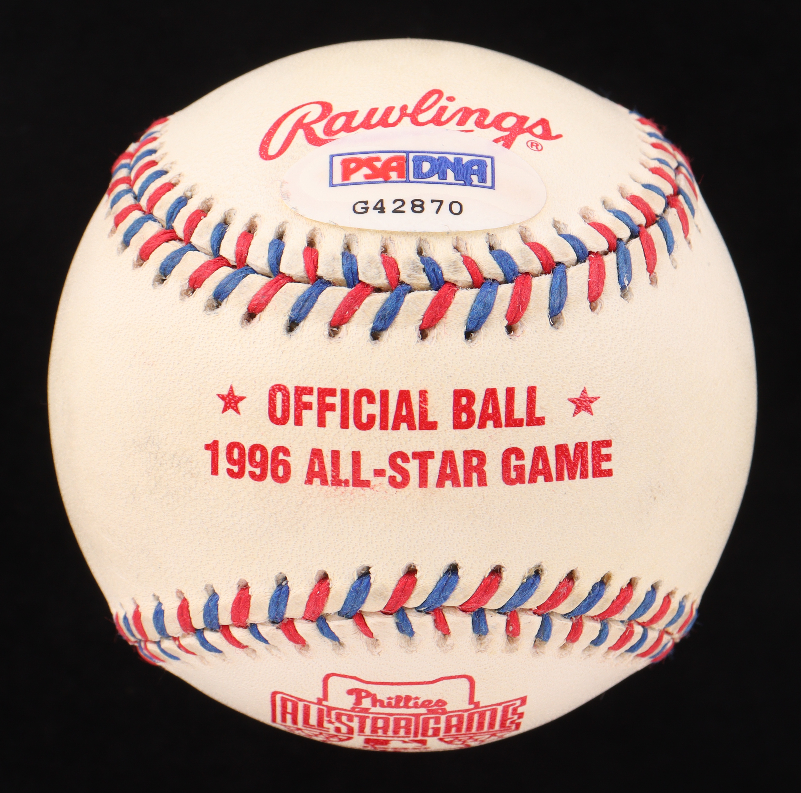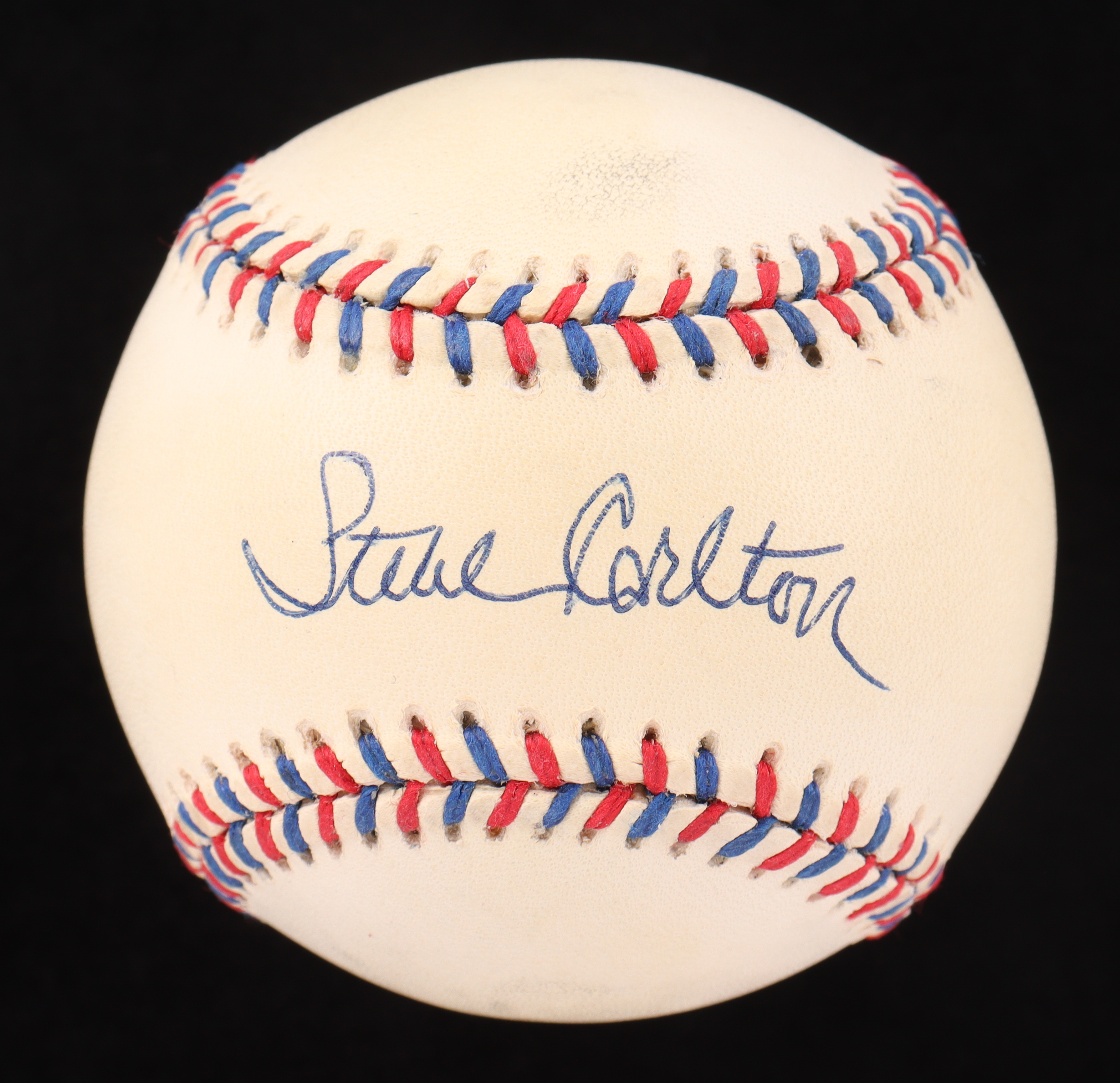 Rawlings Official 1996 All-Star Game baseball. Hand-signed by Steve Carlton (Philadelphia Phillies, HOF). Please note, the ball is naturally toned and stained throughout.