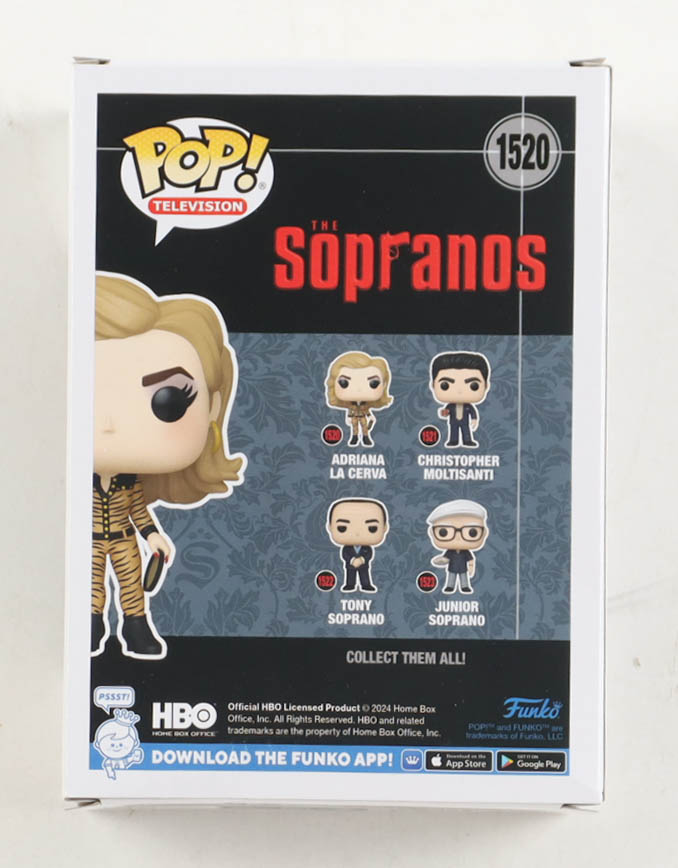 Vinyl figure measures approximately 4" tall. Hand-signed on the packaging by Drea de Matteo (Adriana La Cerva).