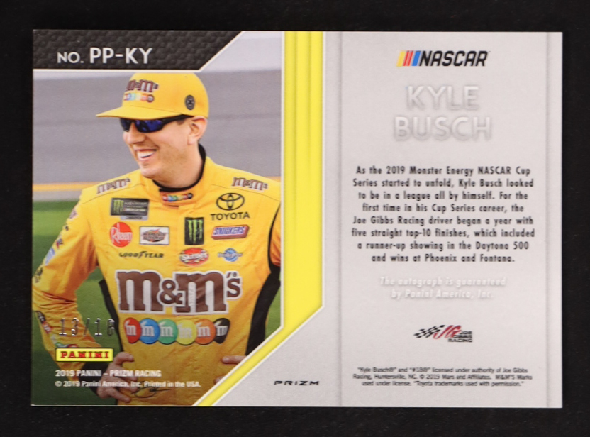 Kyle Busch 2019 Panini Prizm Patented Pennmanship Prizms Blue #8 #13/18