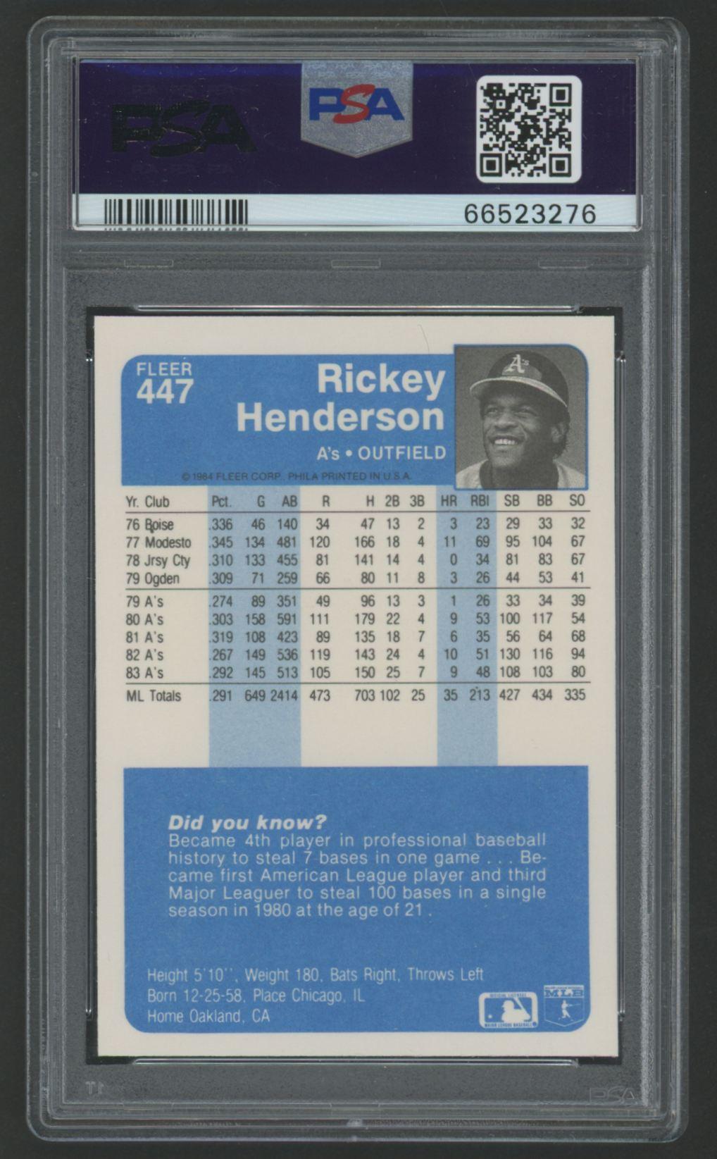 Rickey Henderson 1984 Fleer #447 (PSA 9)