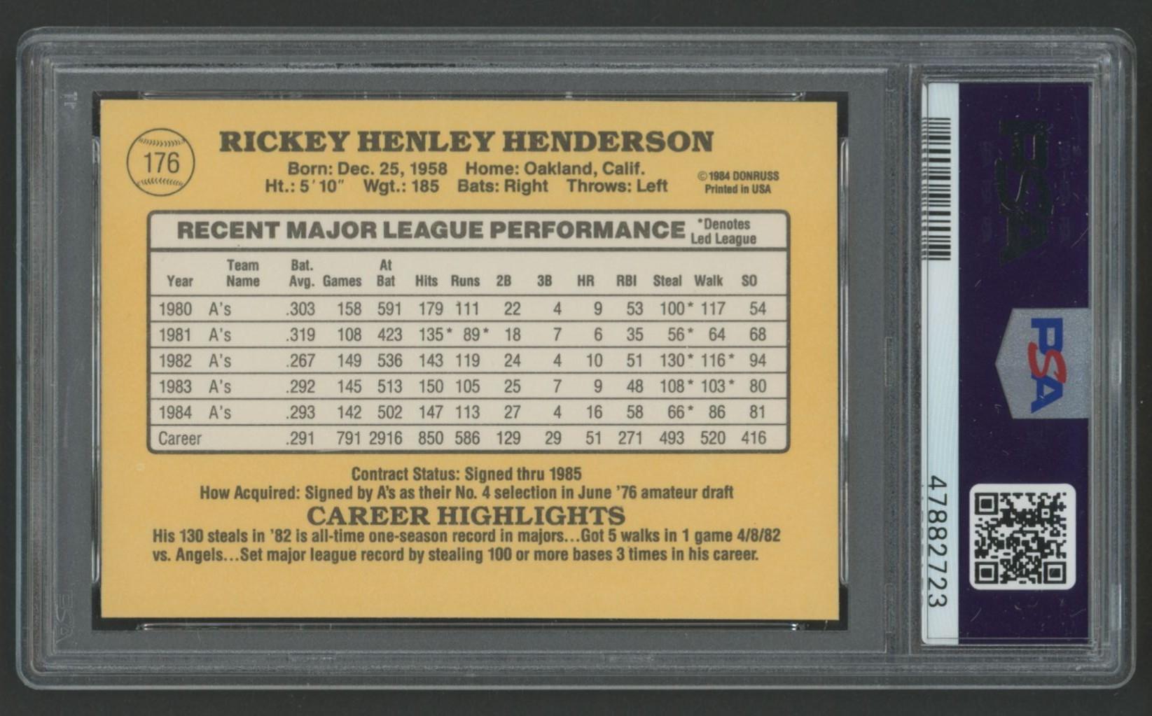 Rickey Henderson 1985 Donruss #176 (PSA 9)