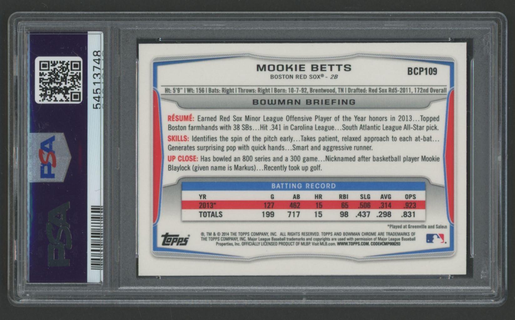 Mookie Betts 2014 Bowman Chrome Prospects #BCP109 RC (PSA 9)