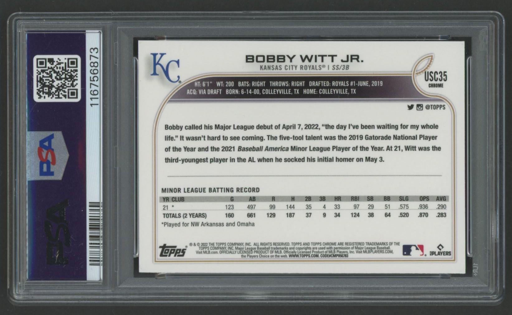 Bobby Witt Jr. 2022 Topps Chrome Update Purple Refractor #USC35 RC (PSA 9)