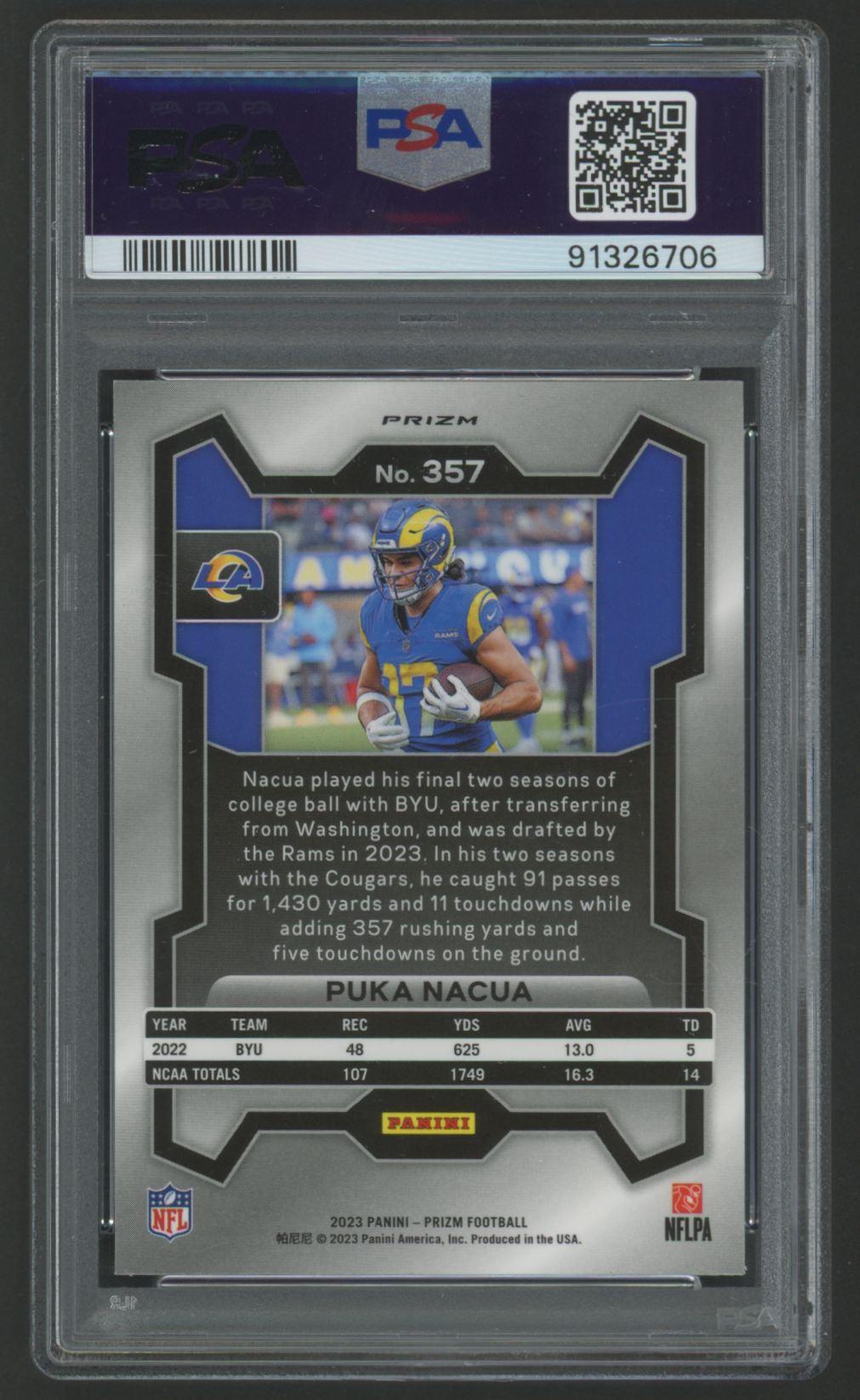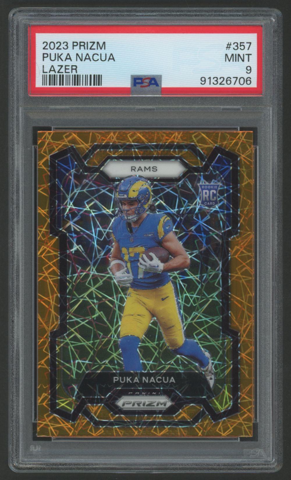 Puka Nacua 2023 Panini Prizm Orange Lazer #357 RC (PSA 9)