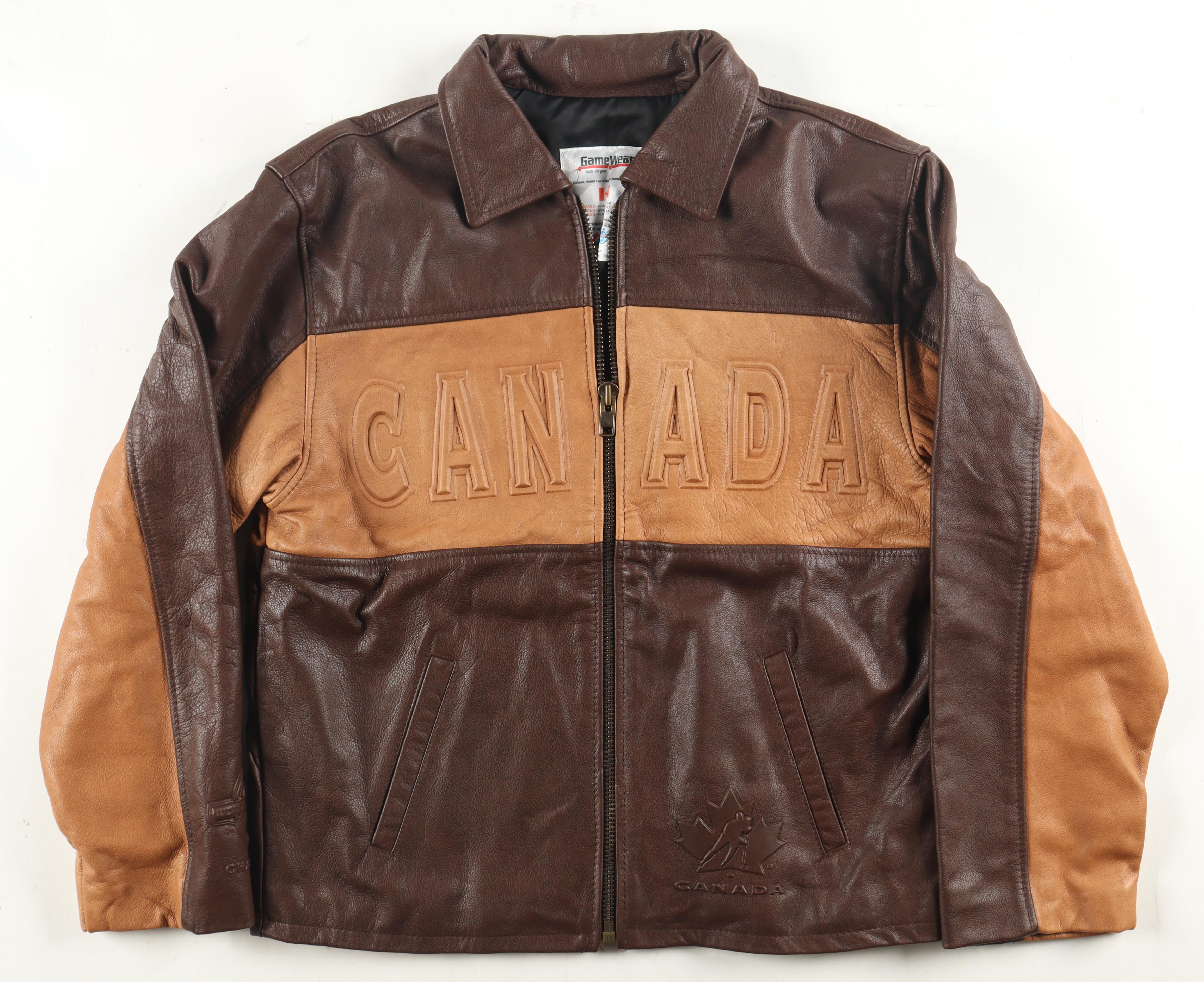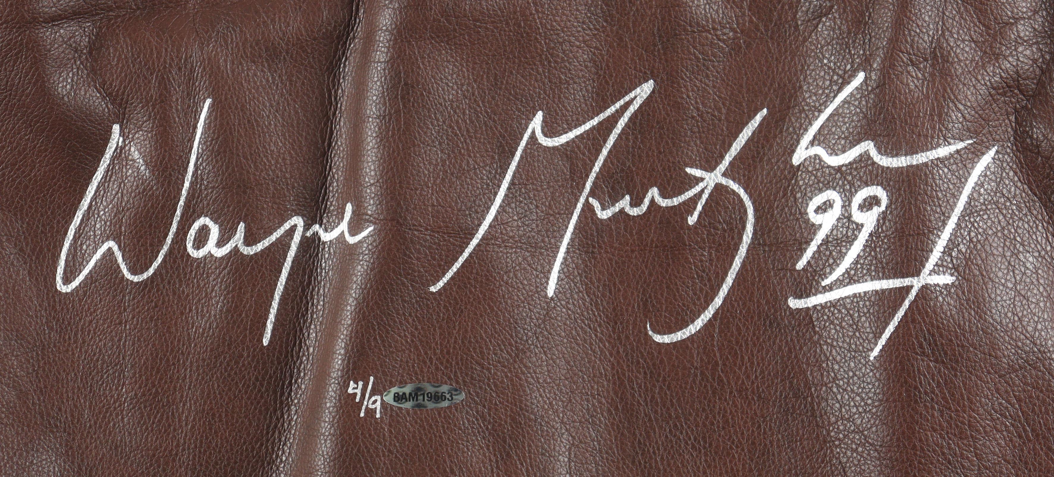 GameWear Team Canada World Cup leather jacket has been hand-signed on the back by The Great One, Wayne Gretzky! Gretzky signed this jacket with his first and last name making this a unique piece that any collector must have! This jacket is limited edition and has been numbered #4/9.