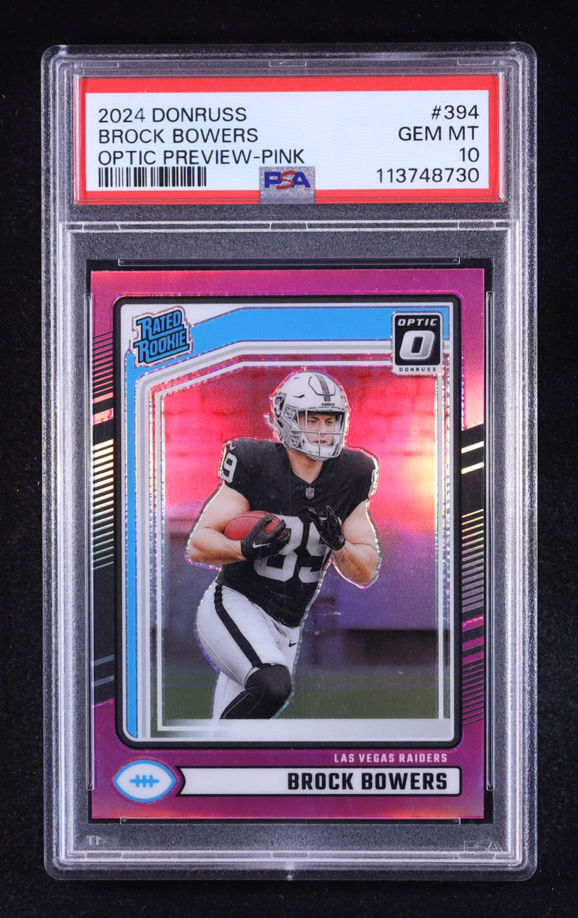 Brock Bowers 2024 Donruss Optic Rated Rookies Preview Pink #394 RC (PSA 10)