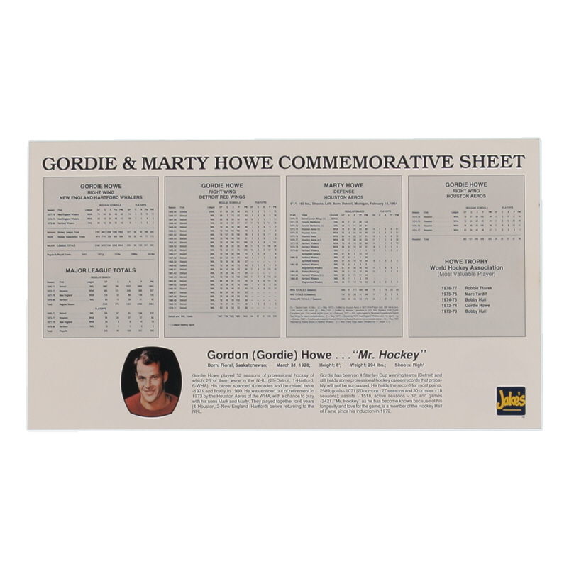 Gordie Howe & Marty Howe Signed LE 1991 Commemorative Trading Card Sheet (PSA)