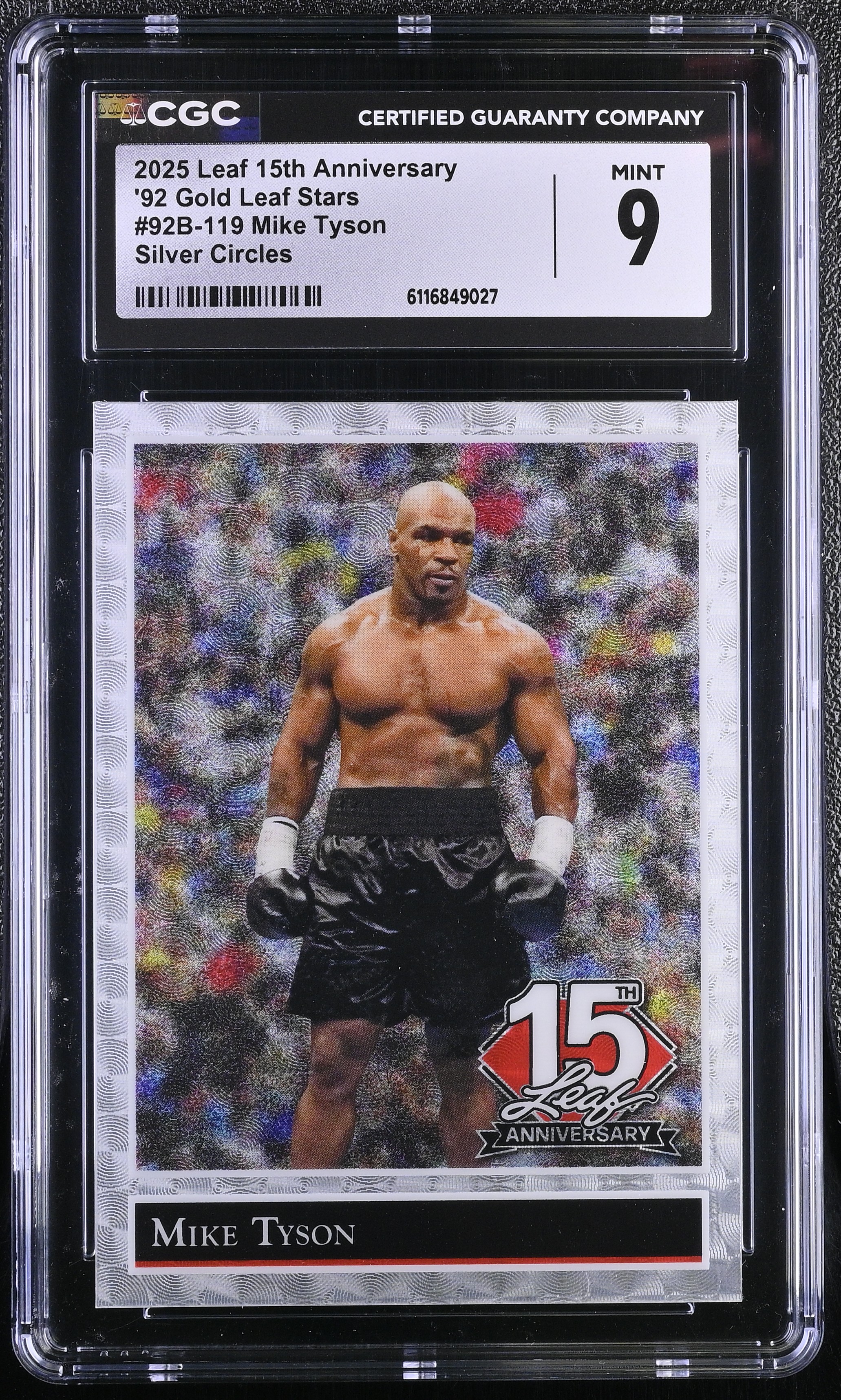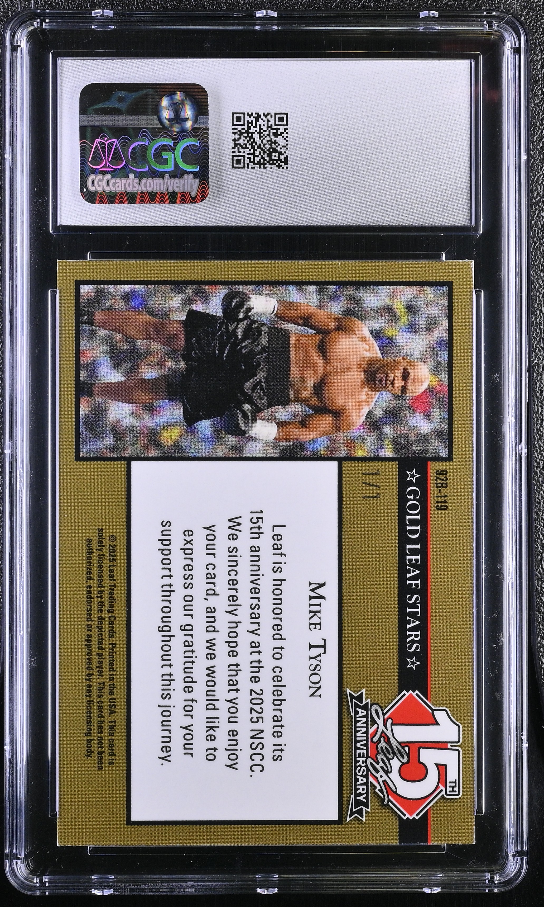 Mike Tyson 2025 Leaf 15th Anniversary '92 Gold Leaf Stars Silver Circles #92B-119 #1/1 (CGC 9)