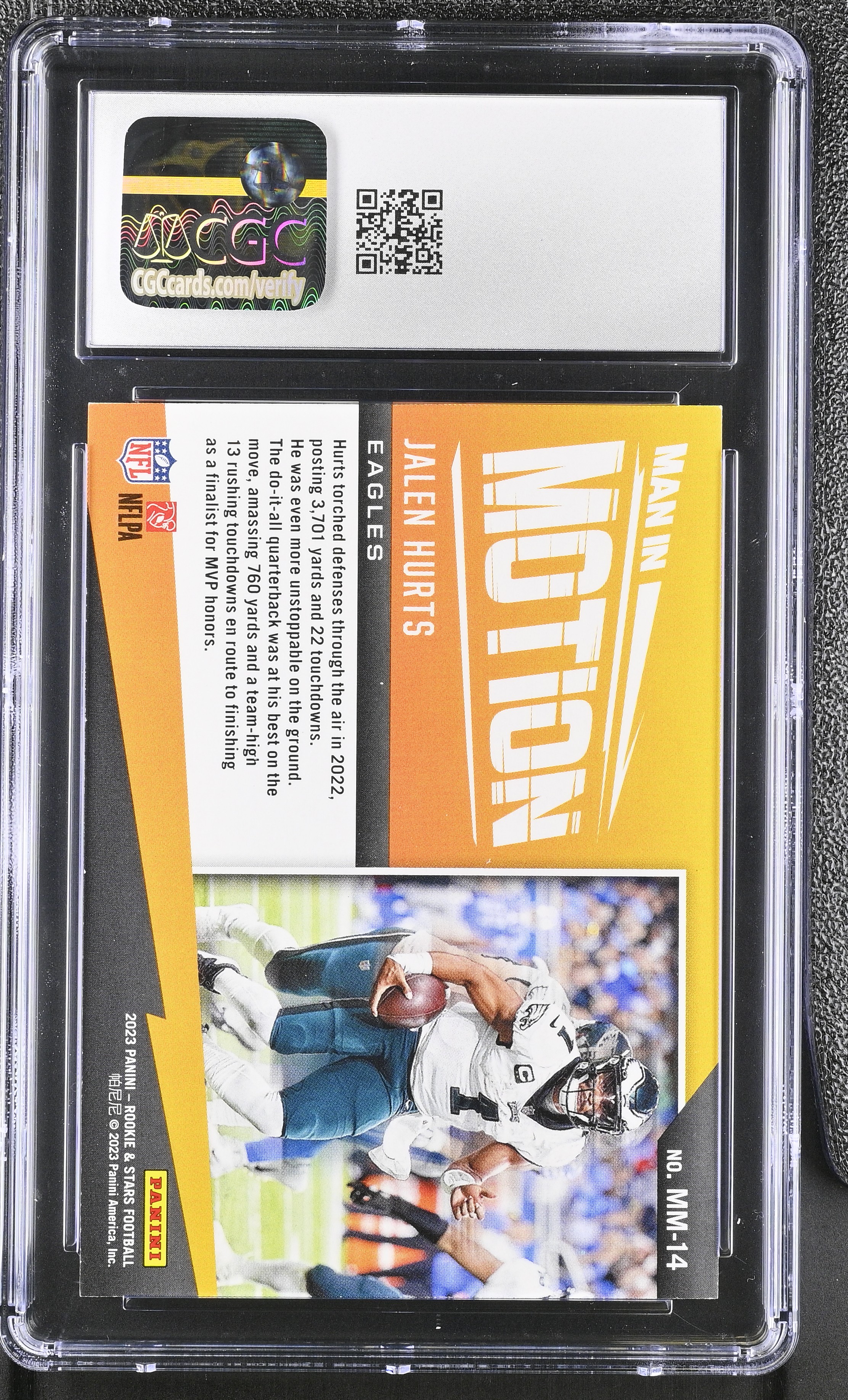 Jalen Hurts 2023 Panini Rookies & Stars Man In Motion True Blue #MM-14 #10/49 (CGC 10)