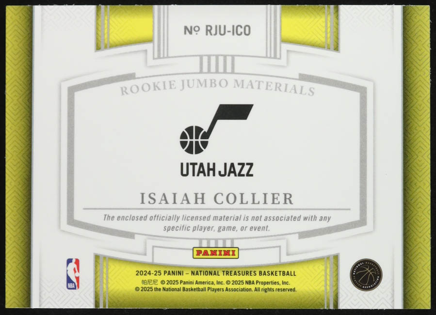 Isaiah Collier 2024-25 Panini National Treasures Rookie Jumbo Materials Prime #13 #14/25 RC