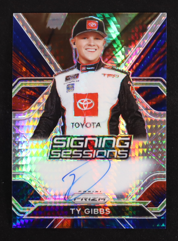 Ty Gibbs 2021 Panini Prizm Signing Sessions Prizms Hyper Red and Blue #34 #16/25