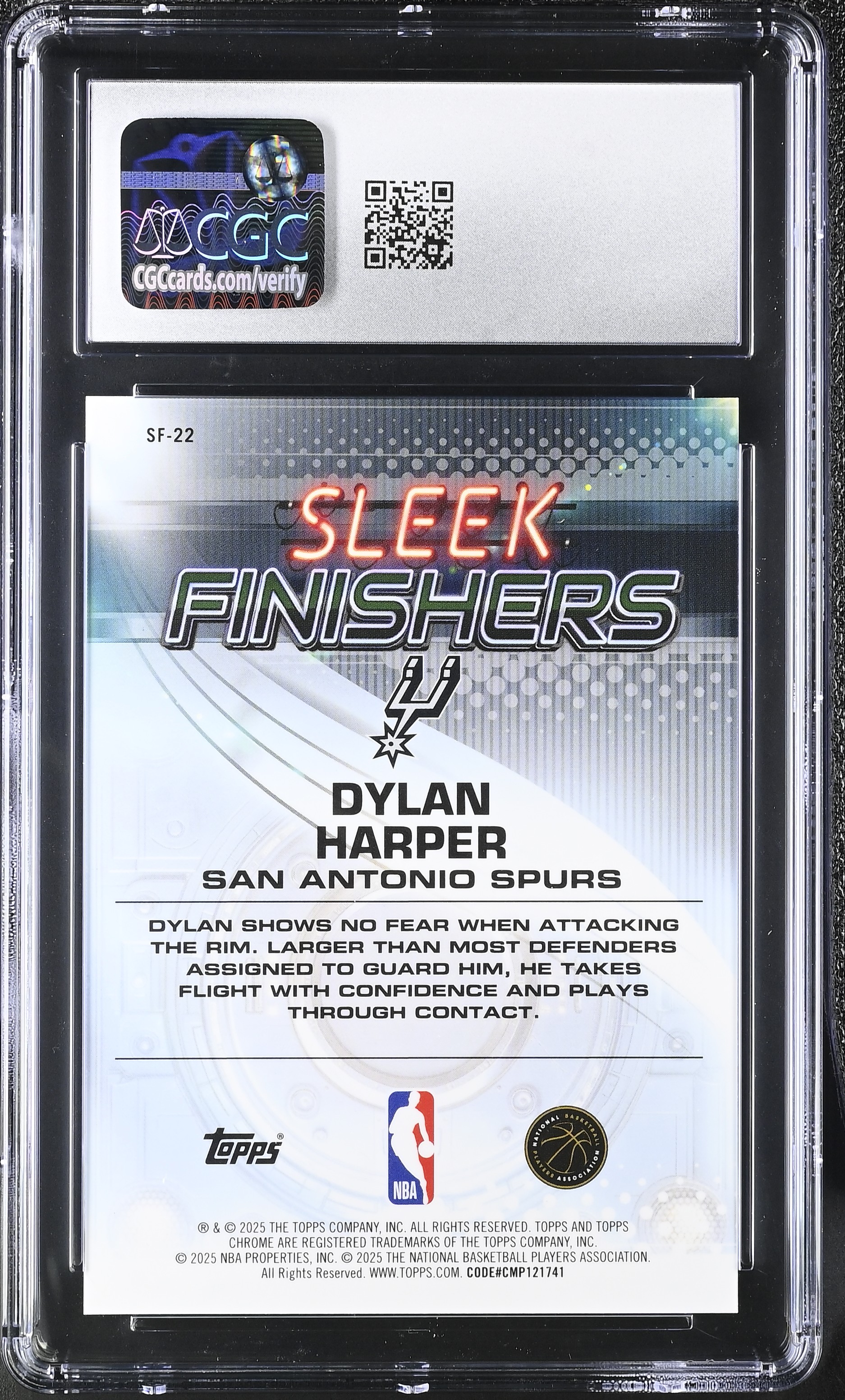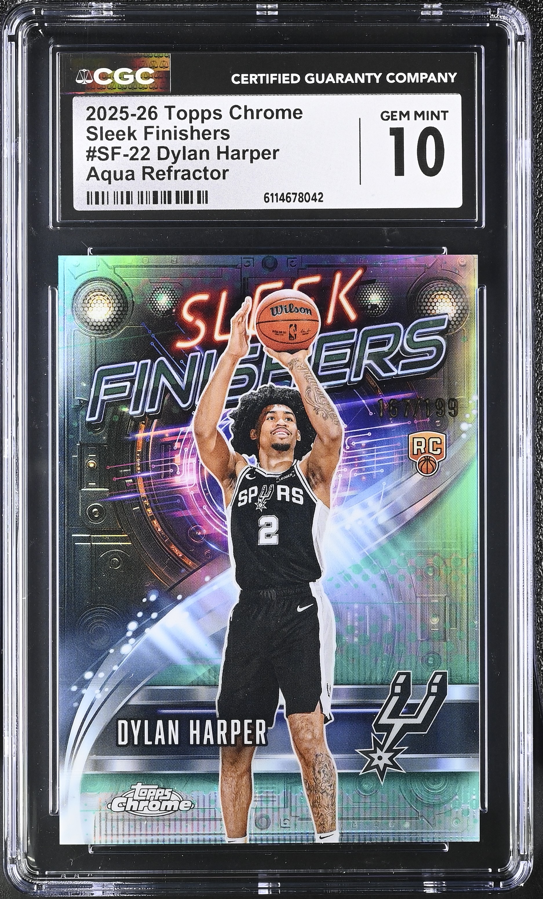 Dylan Harper 2025-26 Topps Chrome Sleek Finishers Aqua Refractor #SF-22 #167/199 RC (CGC 10)