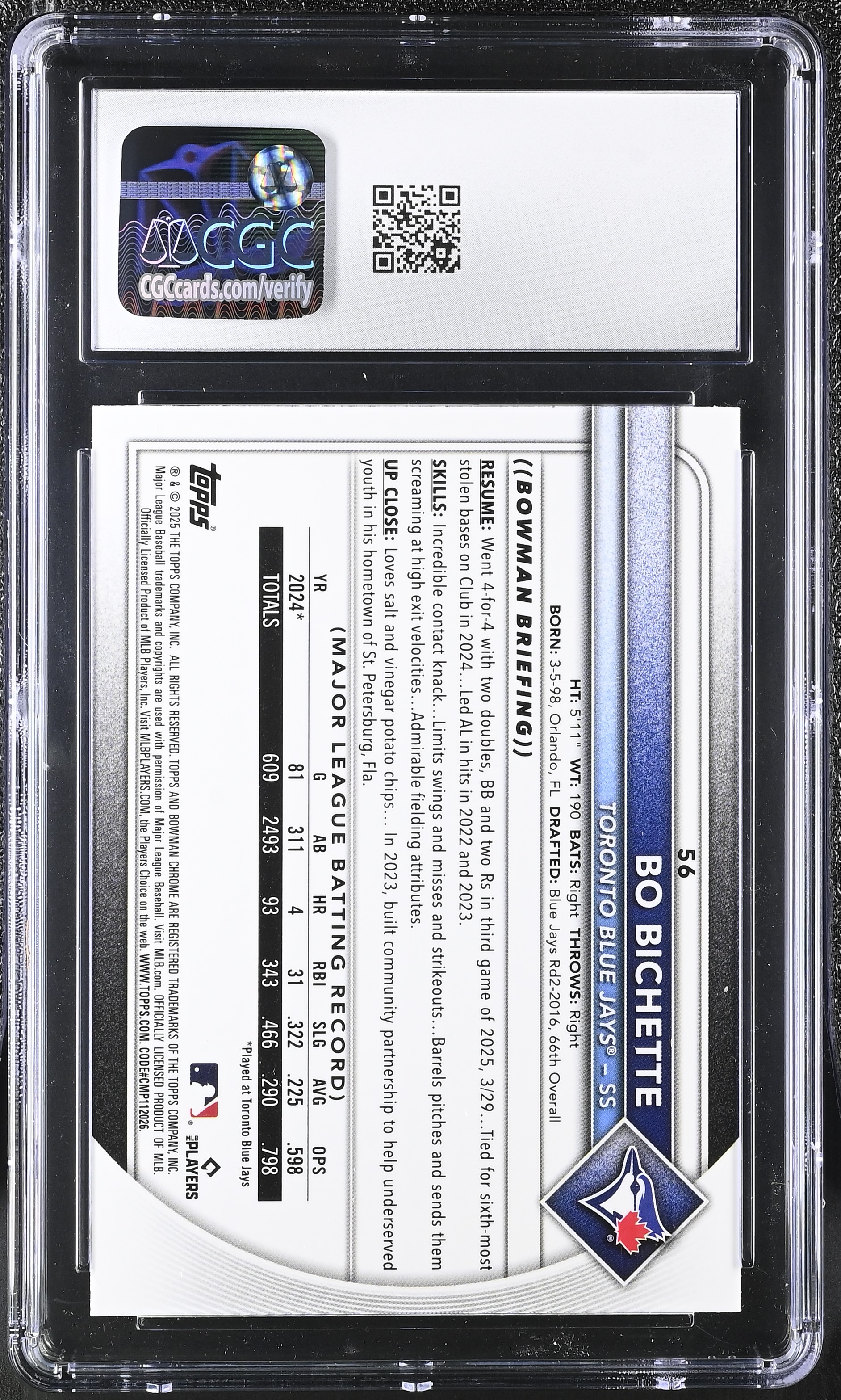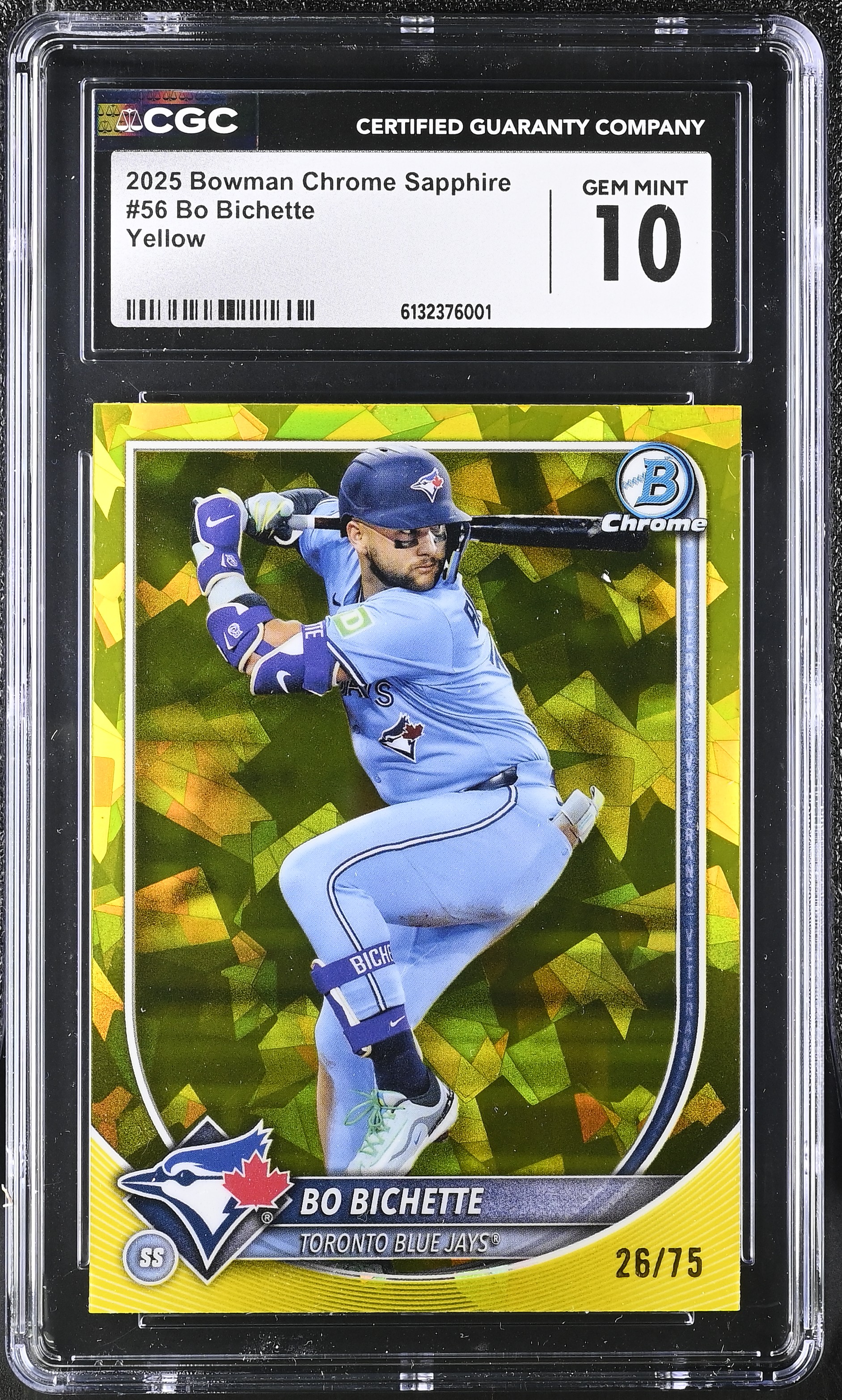 Bo Bichette 2025 Bowman Chrome Sapphire Yellow #56 #26/75 (CGC 10)