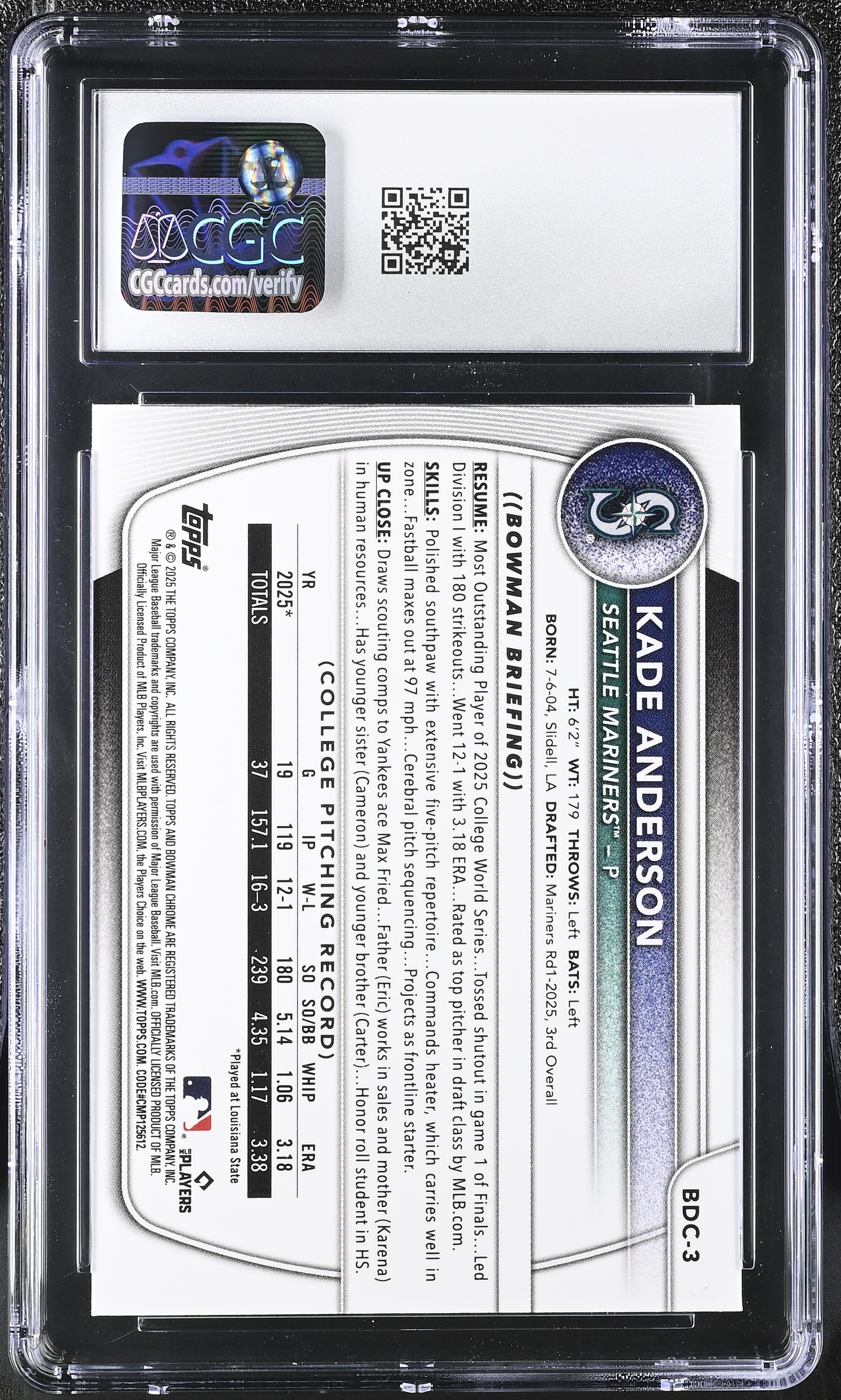 Kade Anderson 2025 Bowman Draft Chrome #BDC-3 RC (CGC 10)