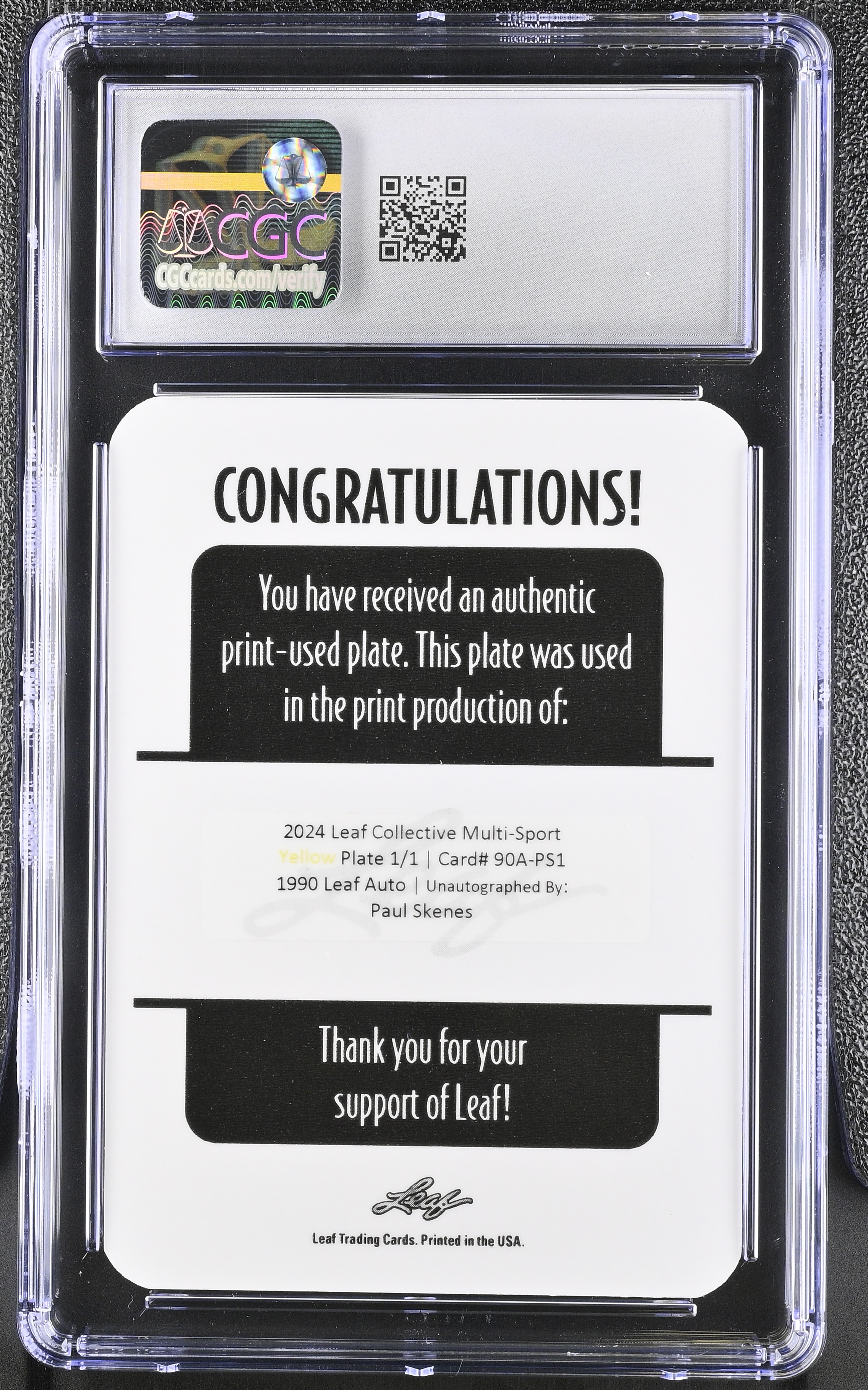 Paul Skenes 2024 Leaf Collective '90 Leaf Autographs Yellow Printing Plate #90A-PS1 #1/1 RC (CGC 9)