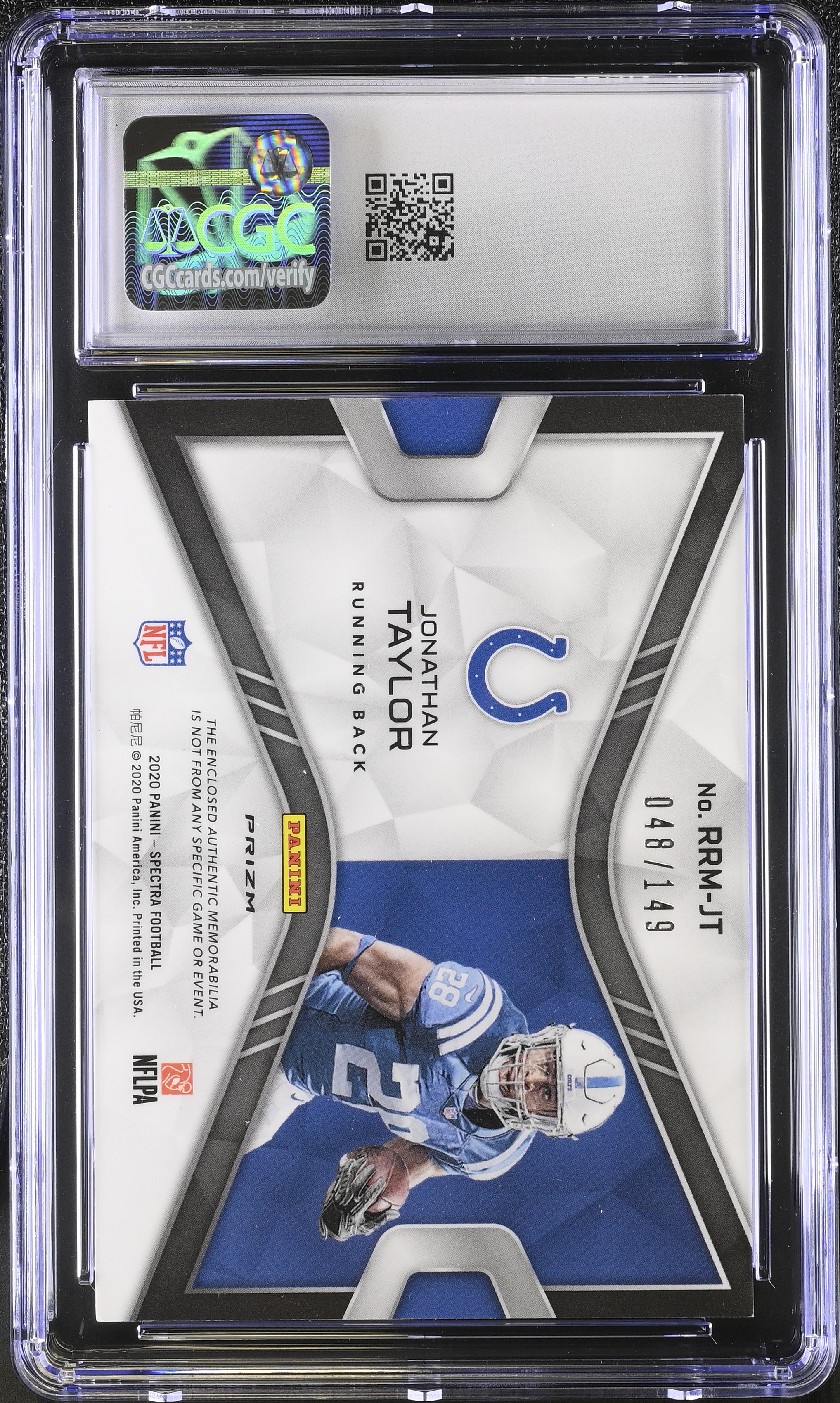 Jonathan Taylor 2020 Panini Spectra Rising Rookie Materials #RRM-JT #048/149 RC (CGC 10)