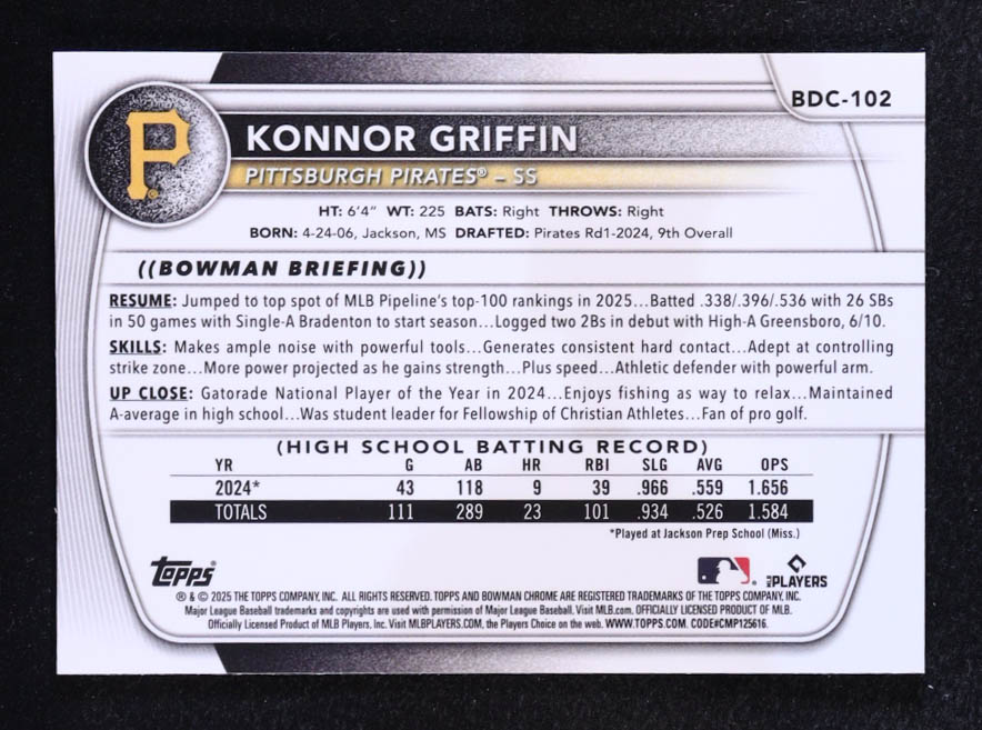 Konnor Griffin 2025 Bowman Chrome Draft Mega Box #BDC102 RC