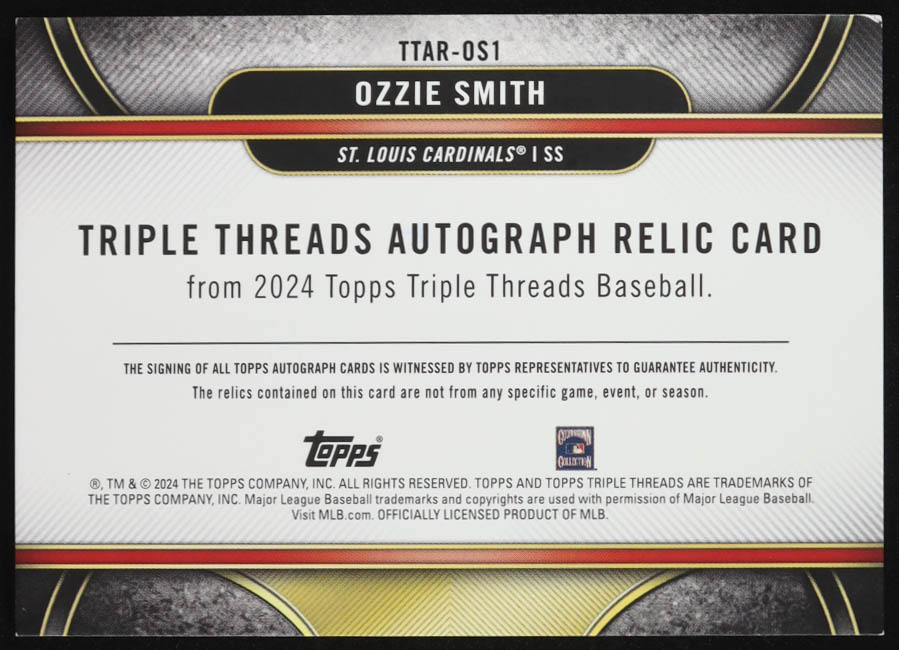 Ozzie Smith 2024 Topps Triple Threads Autograph Relics #TTAROS1 #09/36