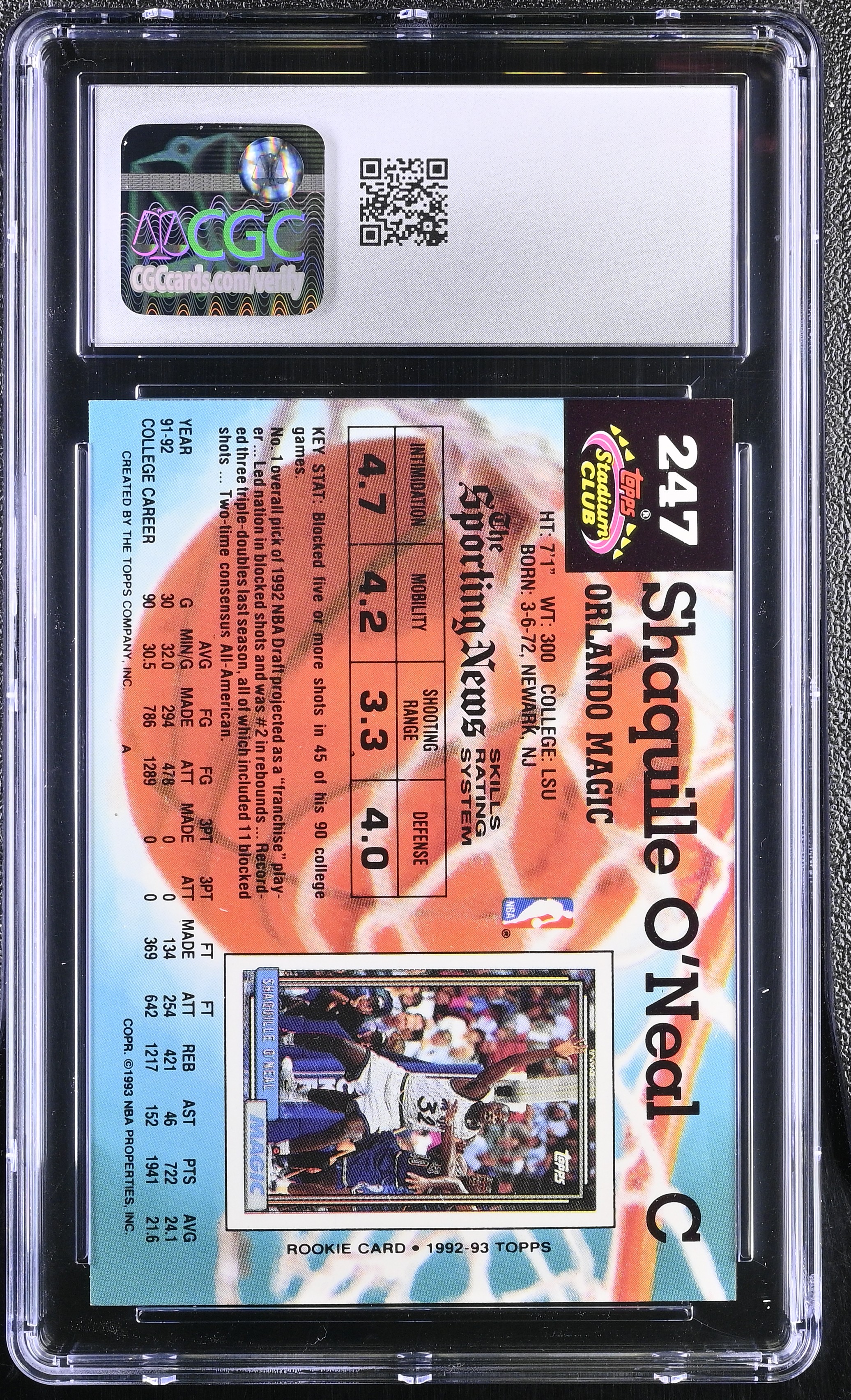 Shaquille O'Neal 1992-93 Stadium Club #247 RC (CGC 10)