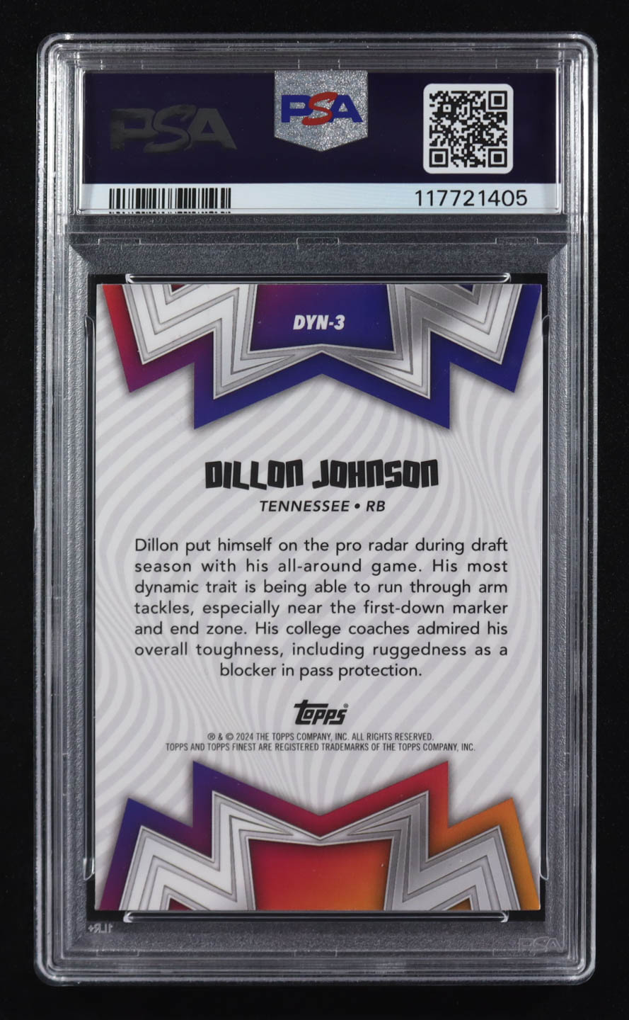 Dillon Johnson 2024 Finest Dynamos Purple Refractors #DYN3 RC #10/125 (PSA 10)