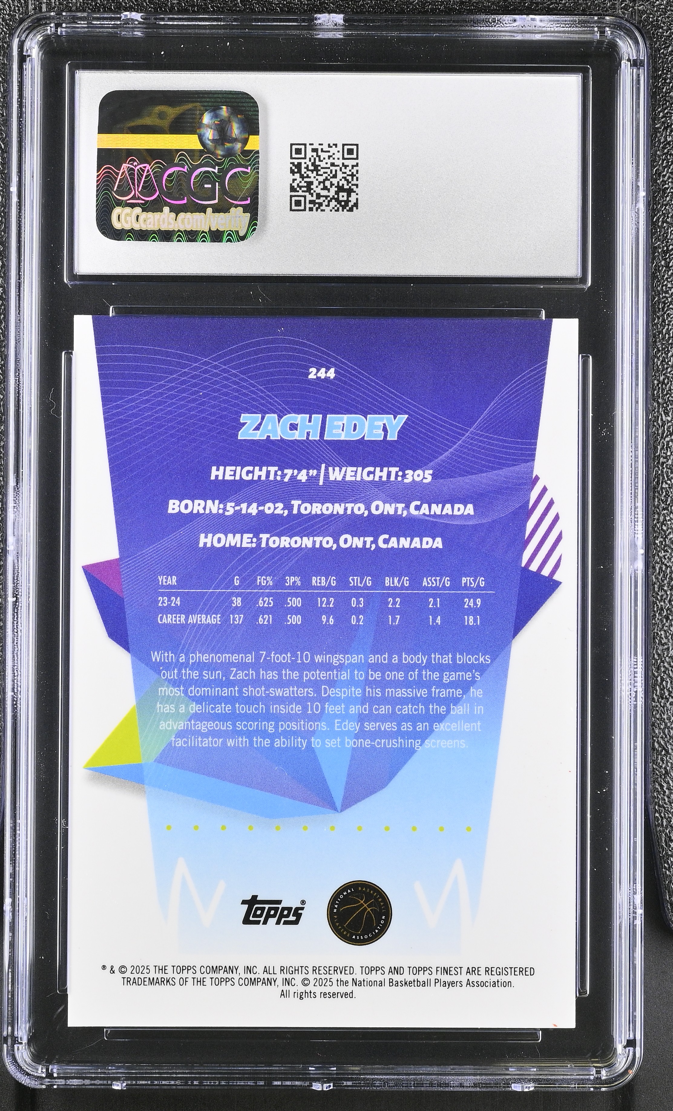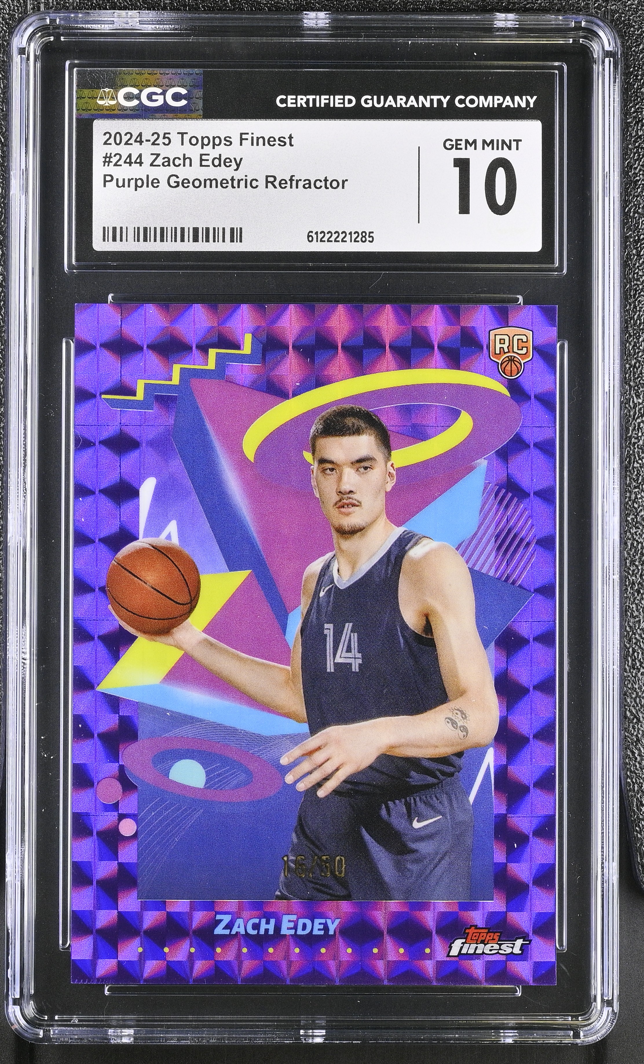 Zach Edey 2024-25 Topps Finest Purple Geometric Refractor #244 #16/50 RC (CGC 10)