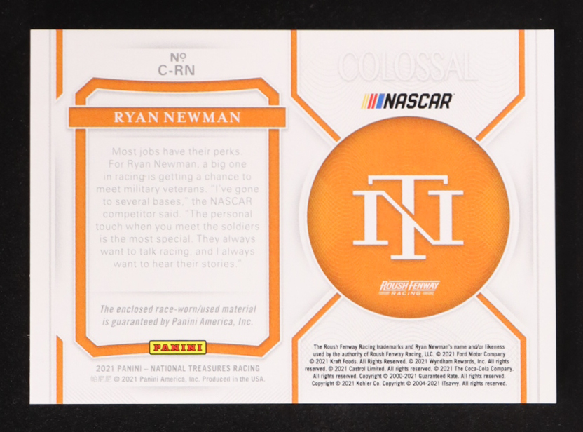 Ryan Newman 2021 Panini National Treasures Colossal Race Used Gloves #4 #2/7