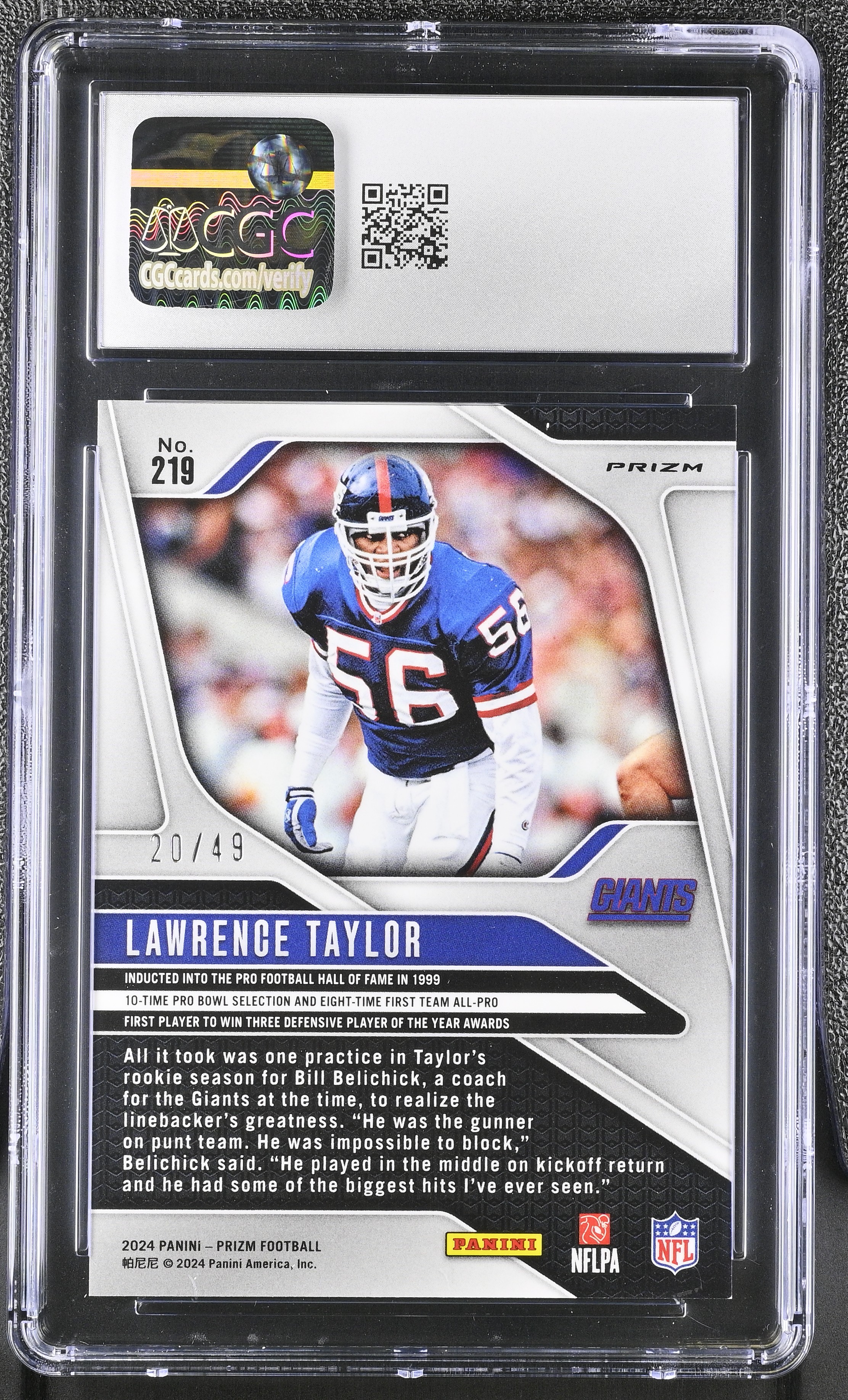 Lawrence Taylor 2024 Panini Prizm No Huddle Purple #219 #20/49 (CGC 10)