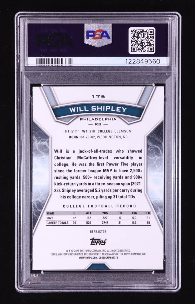 Will Shipley 2024 Topps Resurgence Refractors #175 RC (PSA 9)