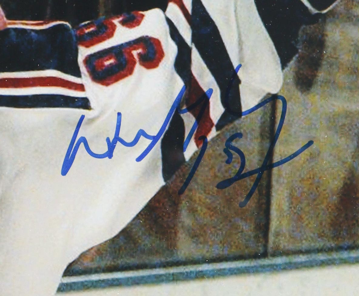 Custom frame measures approximately 18.5" x 22.5" in size and features a photo hand-signed by "The Great One", Wayne Gretzky!