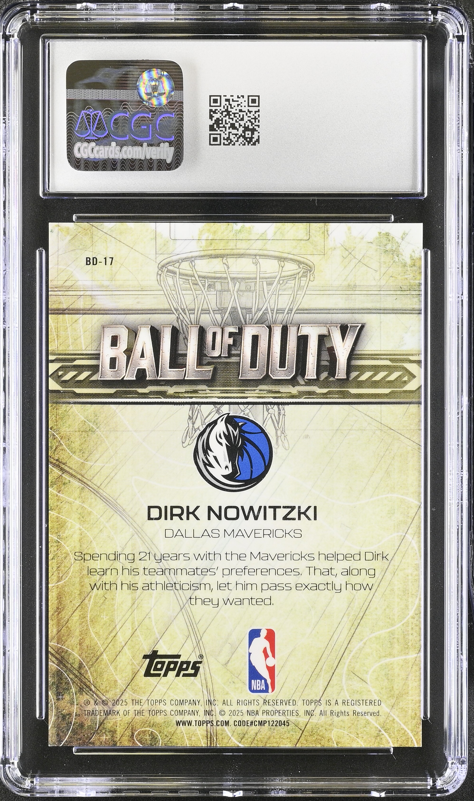 Dirk Nowitzki 2025-26 Topps Chrome Ball Of Duty Orange Refractor #BD-17 #24/25 (CGC 10)