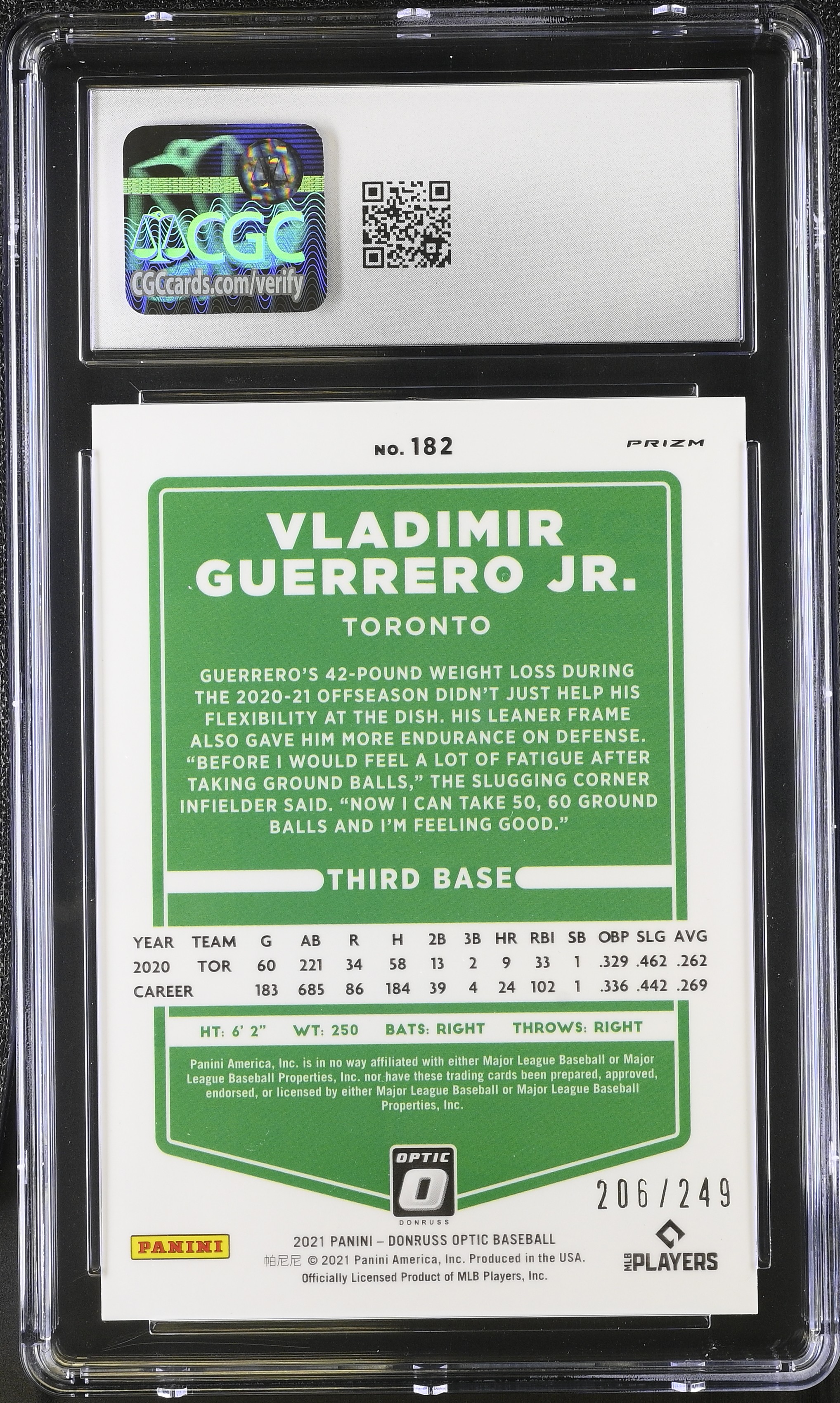 Vladimir Guerrero Jr. 2021 Donruss Optic Pink Velocity #182 #206/249 (CGC 10)