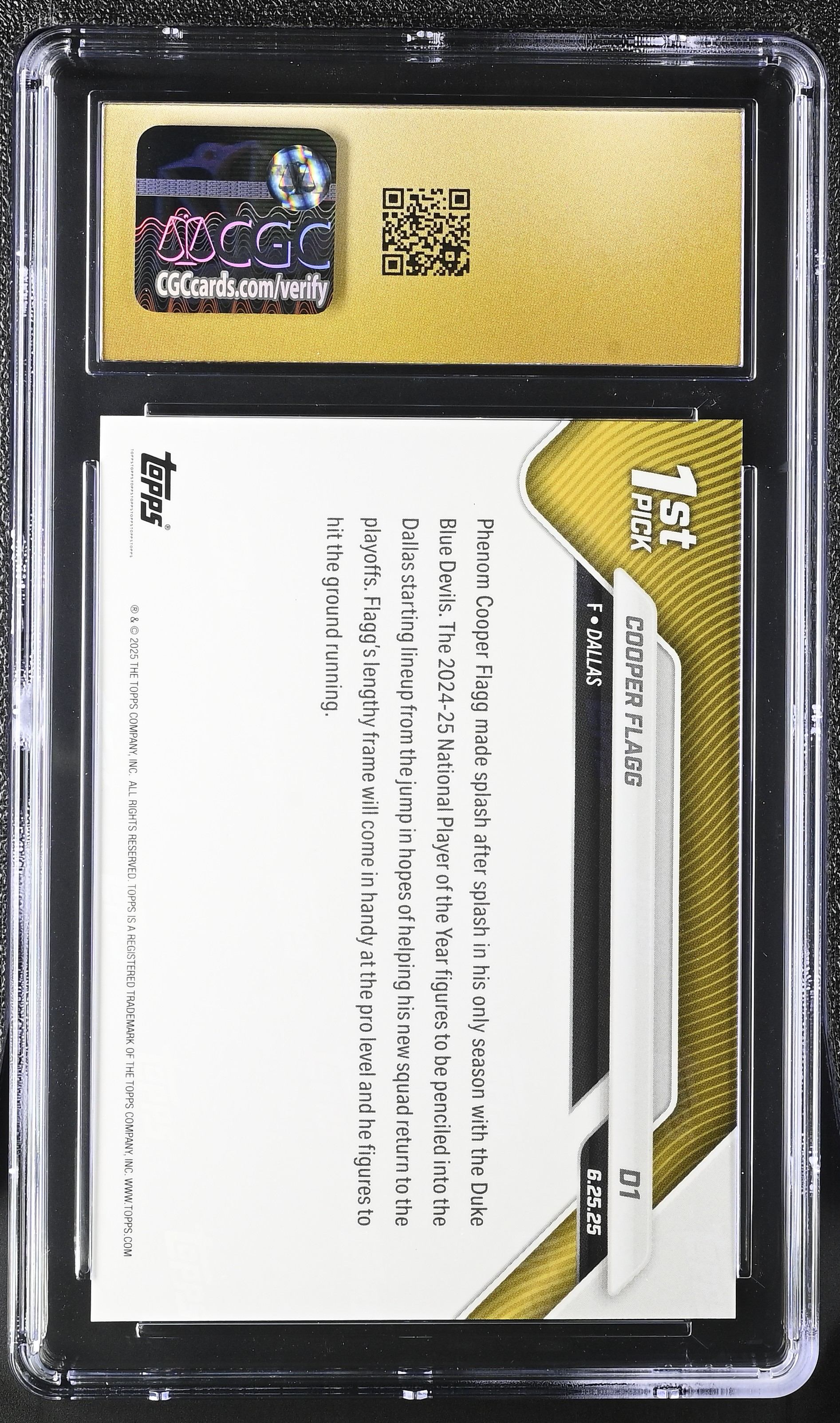 Cooper Flagg 2025 Topps Now Draft #D1 RC (CGC 10 | Black Label)