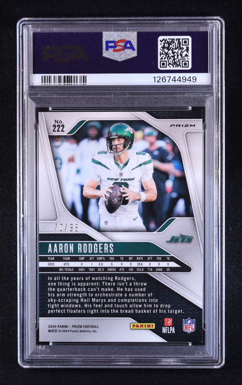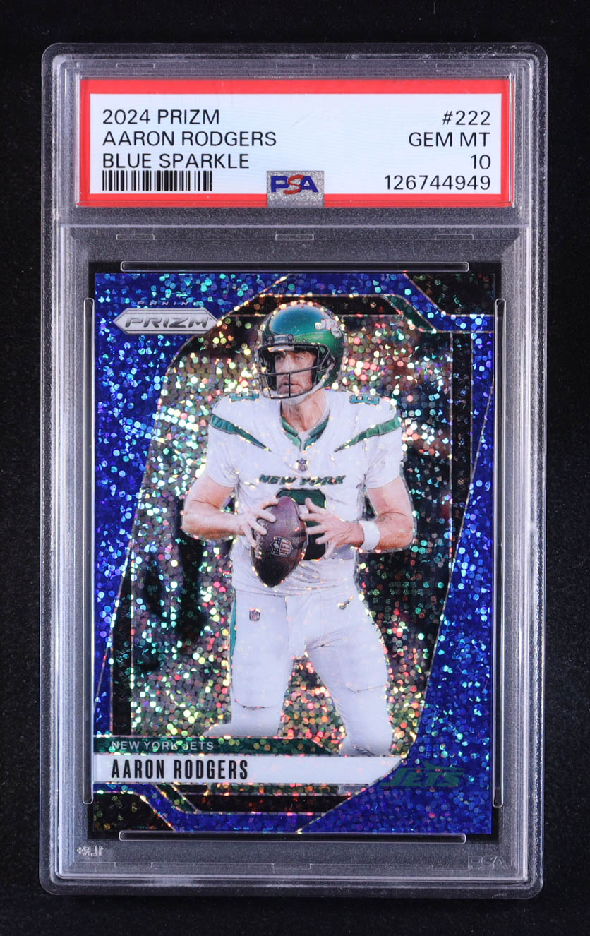 Aaron Rodgers 2024 Panini Prizm Prizms Blue Sparkle #222 #70/96 (PSA 10)