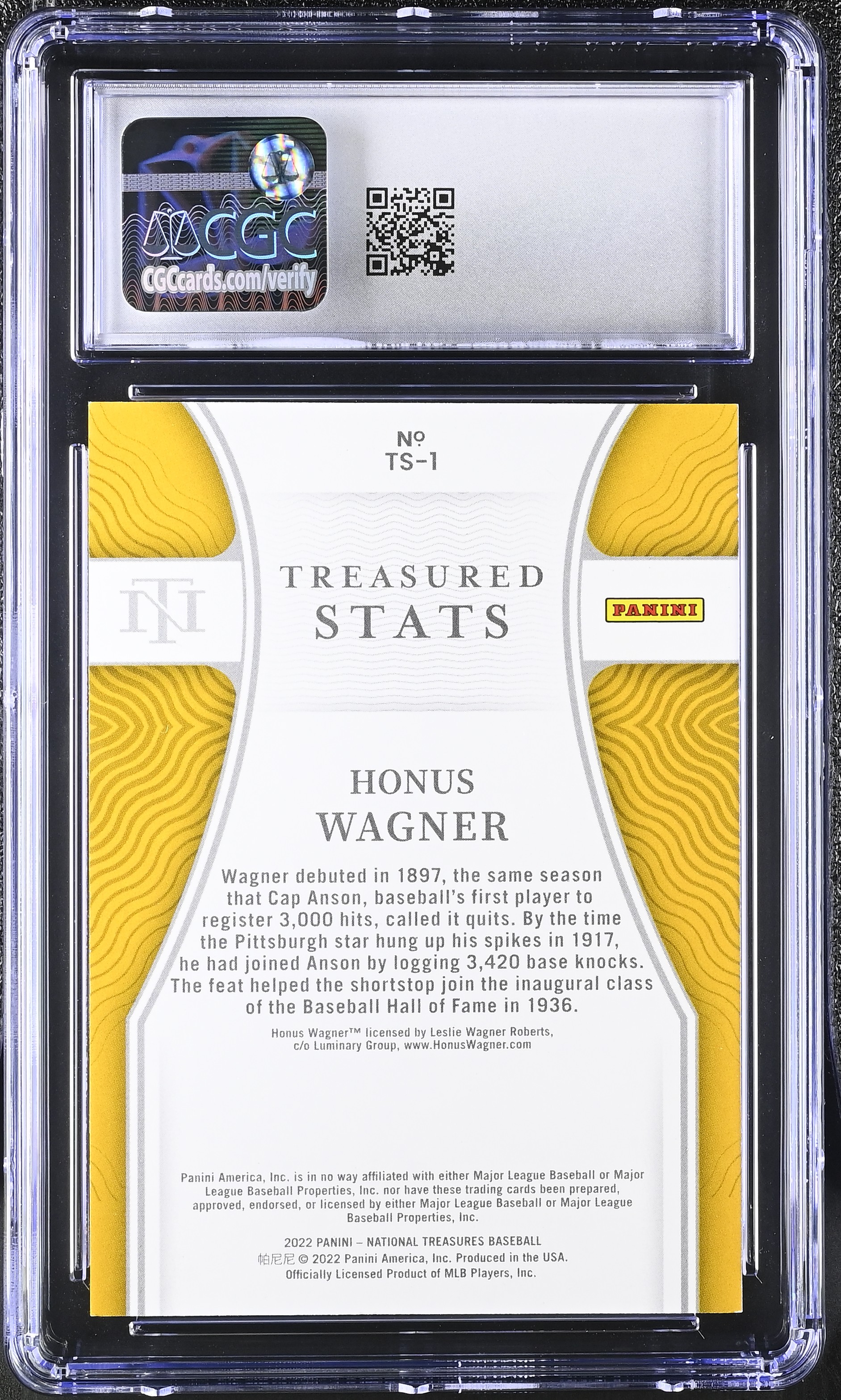 Honus Wagner 2022 Panini National Treasures Treasured Stats #TS-1 #96/99 (CGC 10)
