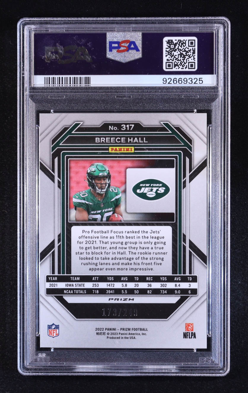 Breece Hall 2022 Panini Prizm Prizms Orange #317 RC #173/249 (PSA 10)