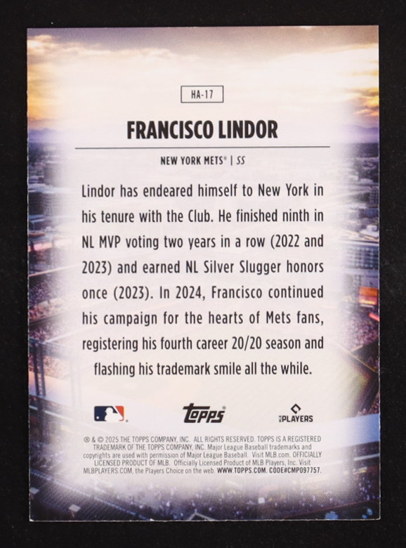 Francisco Lindor 2025 Topps Home Field Advantage #HA17