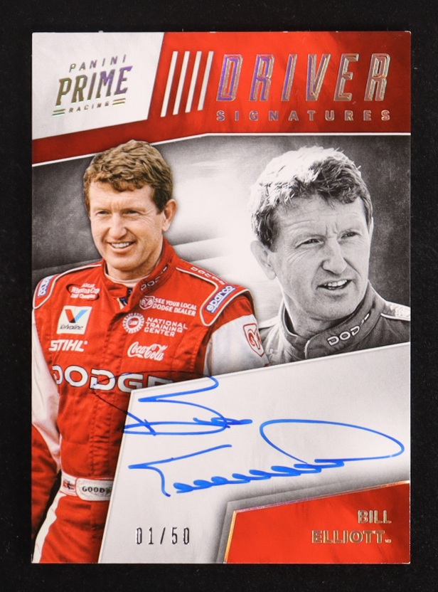 Bill Elliott 2018 Panini Prime Driver Signatures Holo Gold #17 #01/50