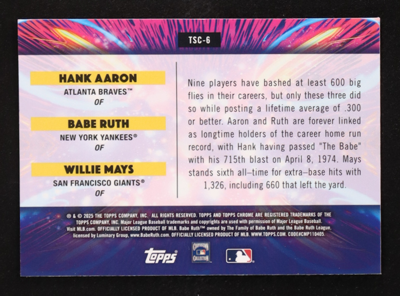 Babe Ruth / Willie Mays / Hank Aaron 2025 Topps Cosmic Chrome Triple Star Clusters #TSC6