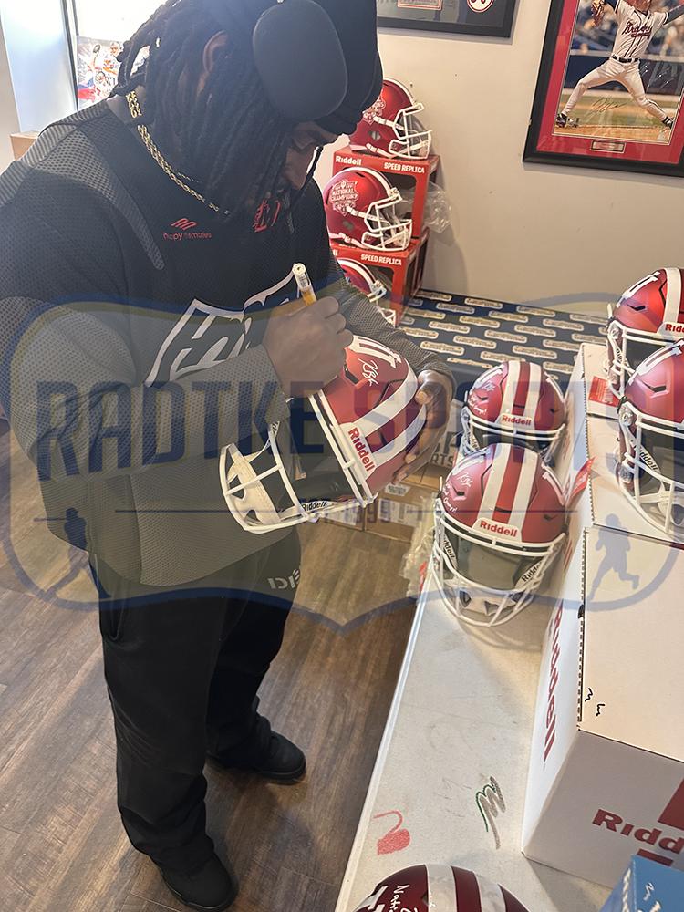 Riddell Indiana Hoosiers full-size authentic on-field speedflex helmet has been hand-signed and inscribed by Kaelon Black.