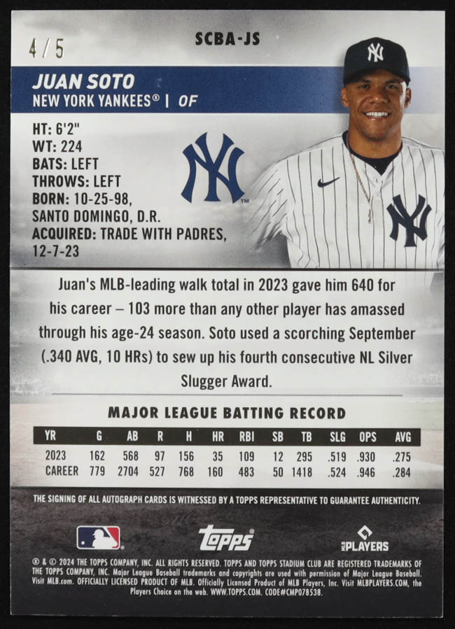 Juan Soto 2024 Stadium Club Autographs Green #SCBAJS #4/5