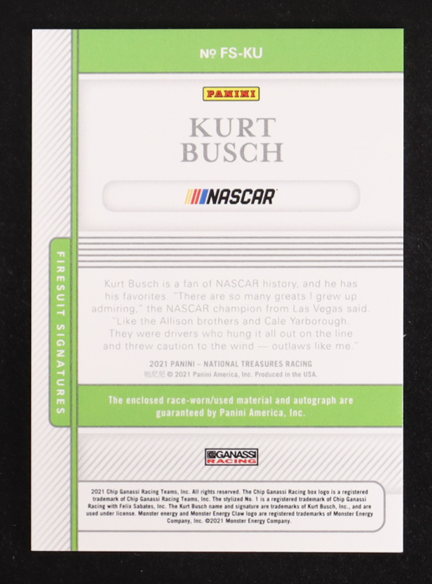 Kurt Busch 2021 Panini National Treasures Firesuit Signatures #18 #36/99